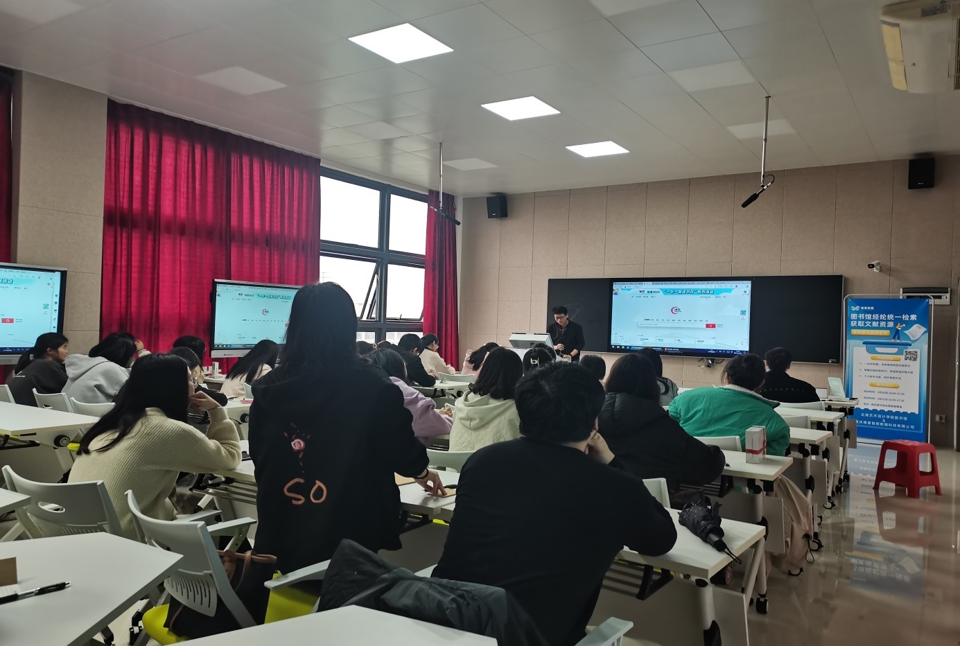 为帮助广大师生进一步了解图书馆的电子资源,提高电子资源的利用率,充分发挥电子资源在教学科研、学科建设中的重要作用,图书馆邀请重庆维普智图数据科技有限公司来我院进行《经纶知识服务平台》使用说明宣传讲座。讲座在图书馆五楼智慧教室举办,主讲老师分类讲解各个资源库的使用情况,对同学们提出的问题也给予耐心讲解,同学们收获满满。(陈霞摄)