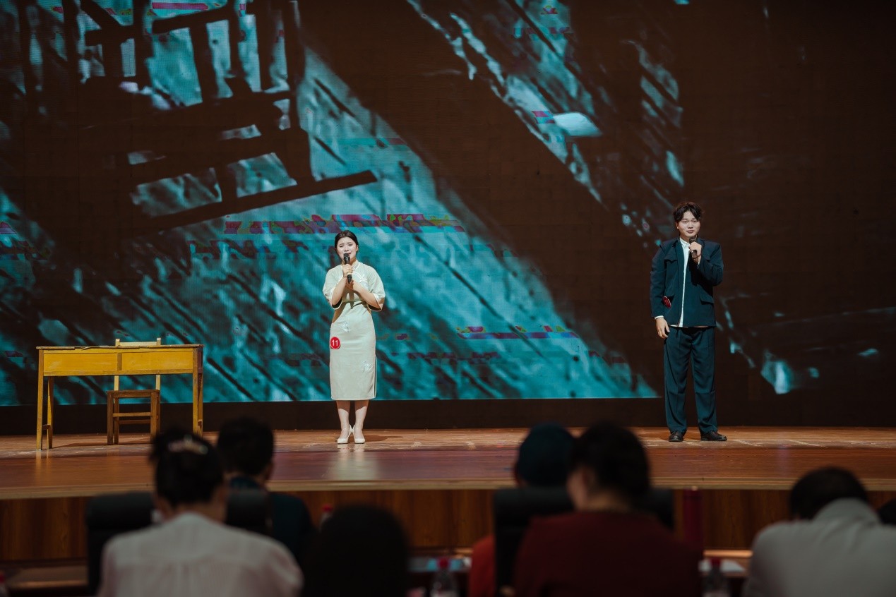决赛现场,选手们用声情并茂的诵读,端庄得体的仪态,为我们奉献了一场精彩纷呈的视听盛宴。经过现场激烈角逐,我校学生罗佳月、王梓旭共同朗读的作品《与妻书》获得本科院校组三等奖。