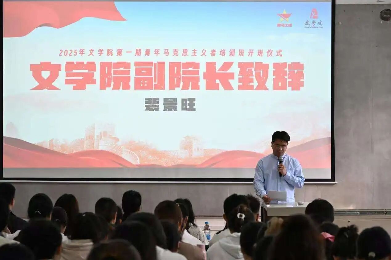 会议最后,文学院副院长裴景旺发表致辞,他对新一期培训班学员寄予了更高期盼,希望学员们肩负起时代责任,未来积极投入社会实践。