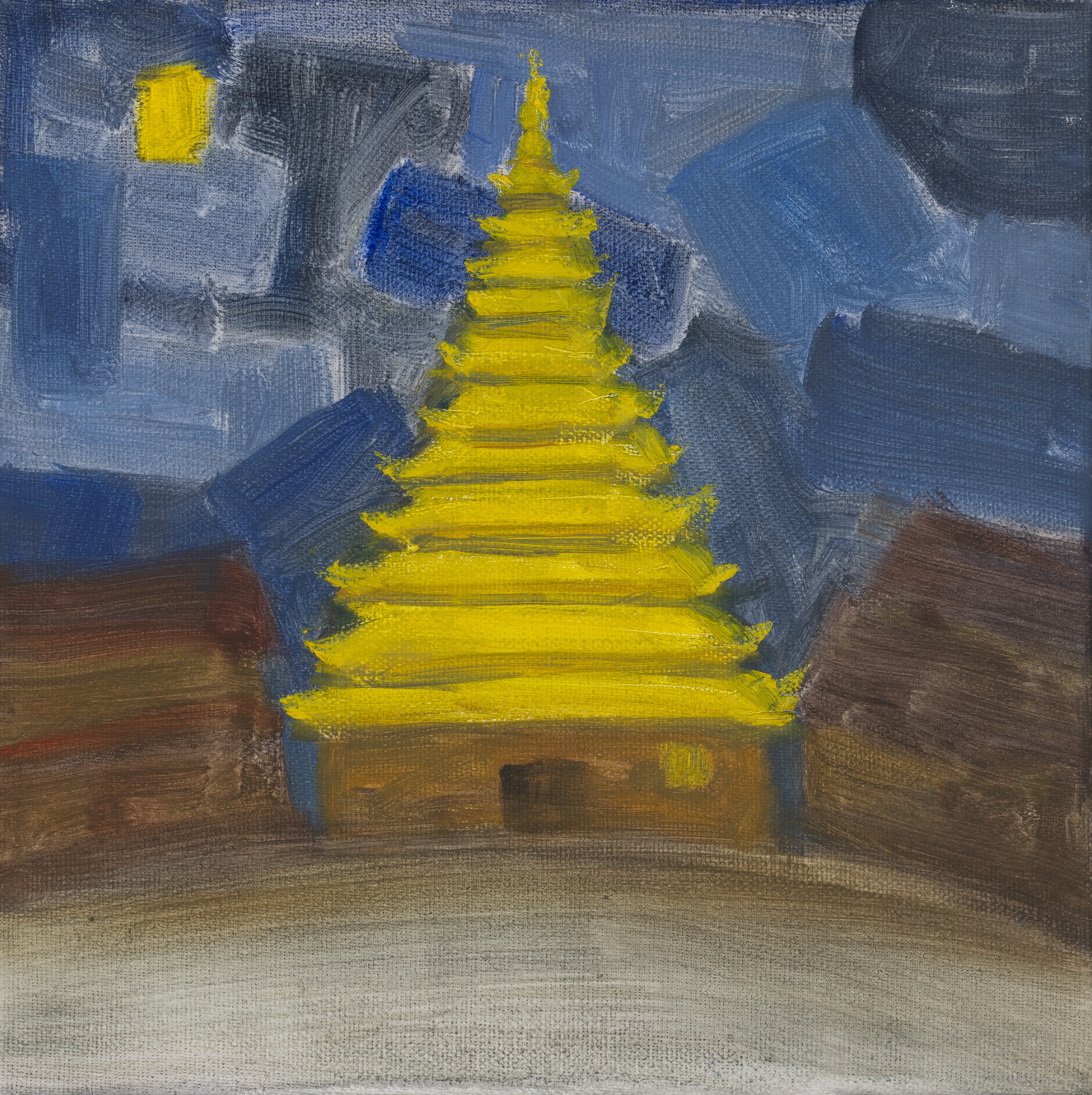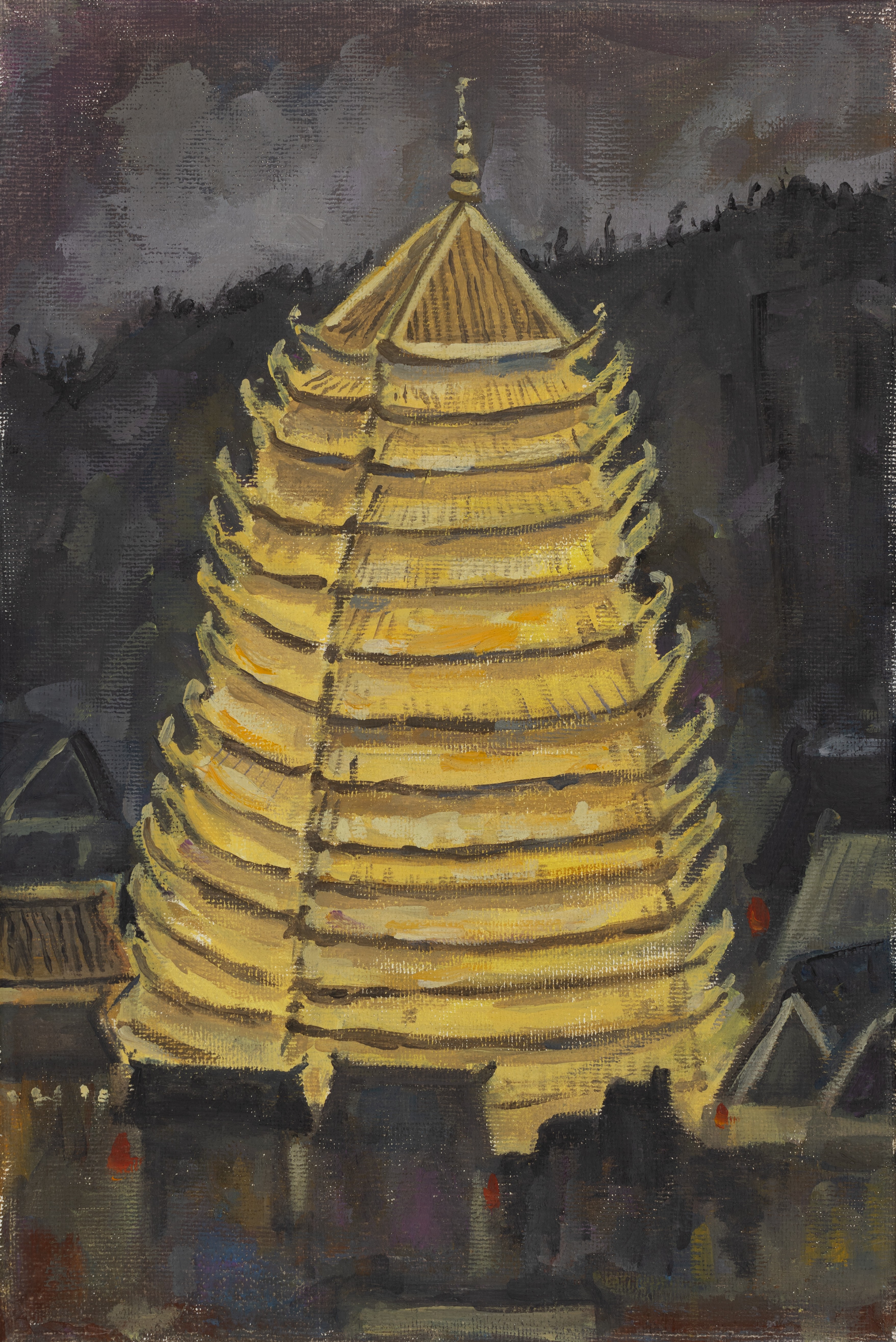 罗艺俏,绘画专业,《平寨古楼的夜》,20x30cm,布面油画