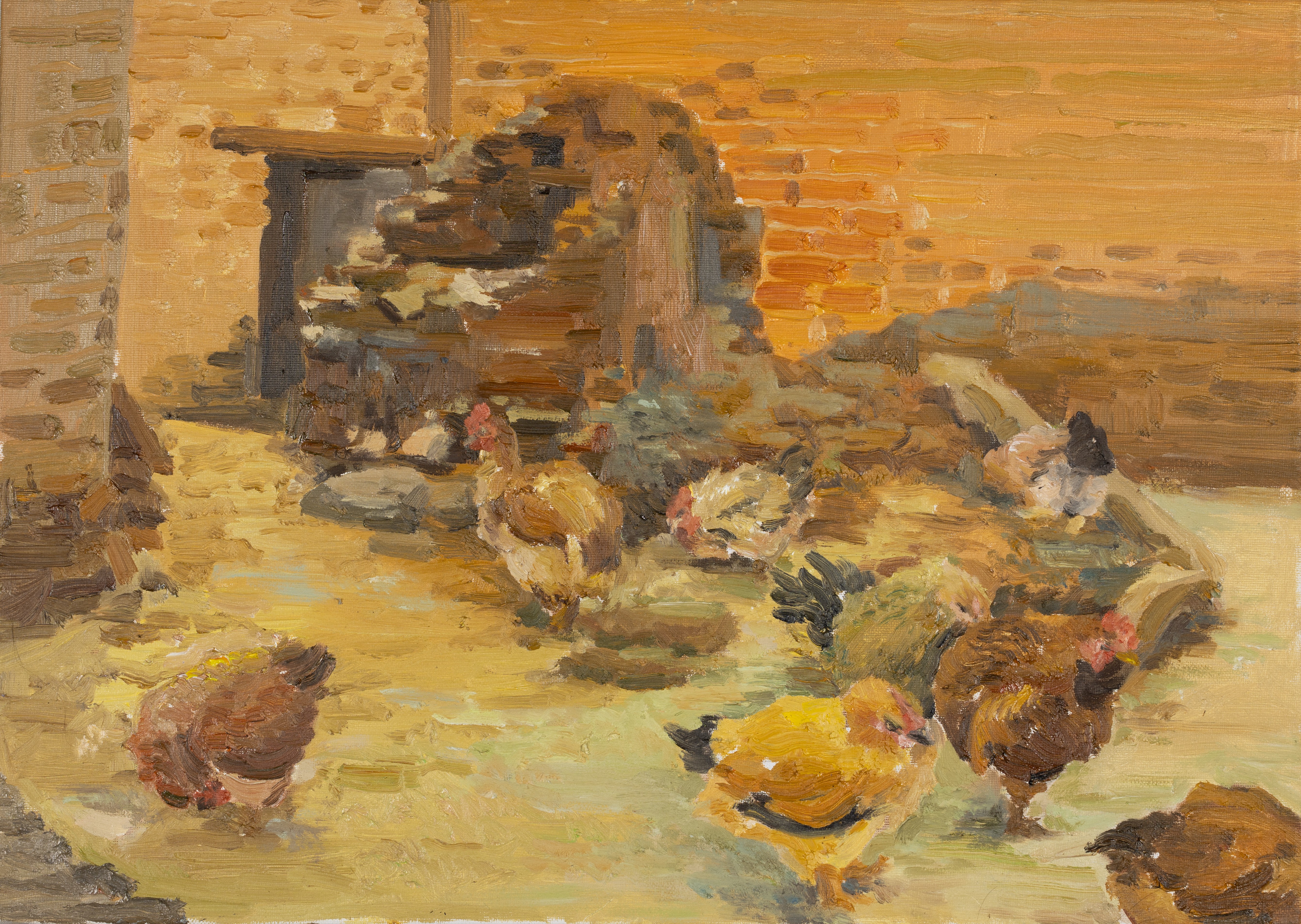 谭韵芊,美术学专业,《乡间小鸡》,40x40cm,中国画