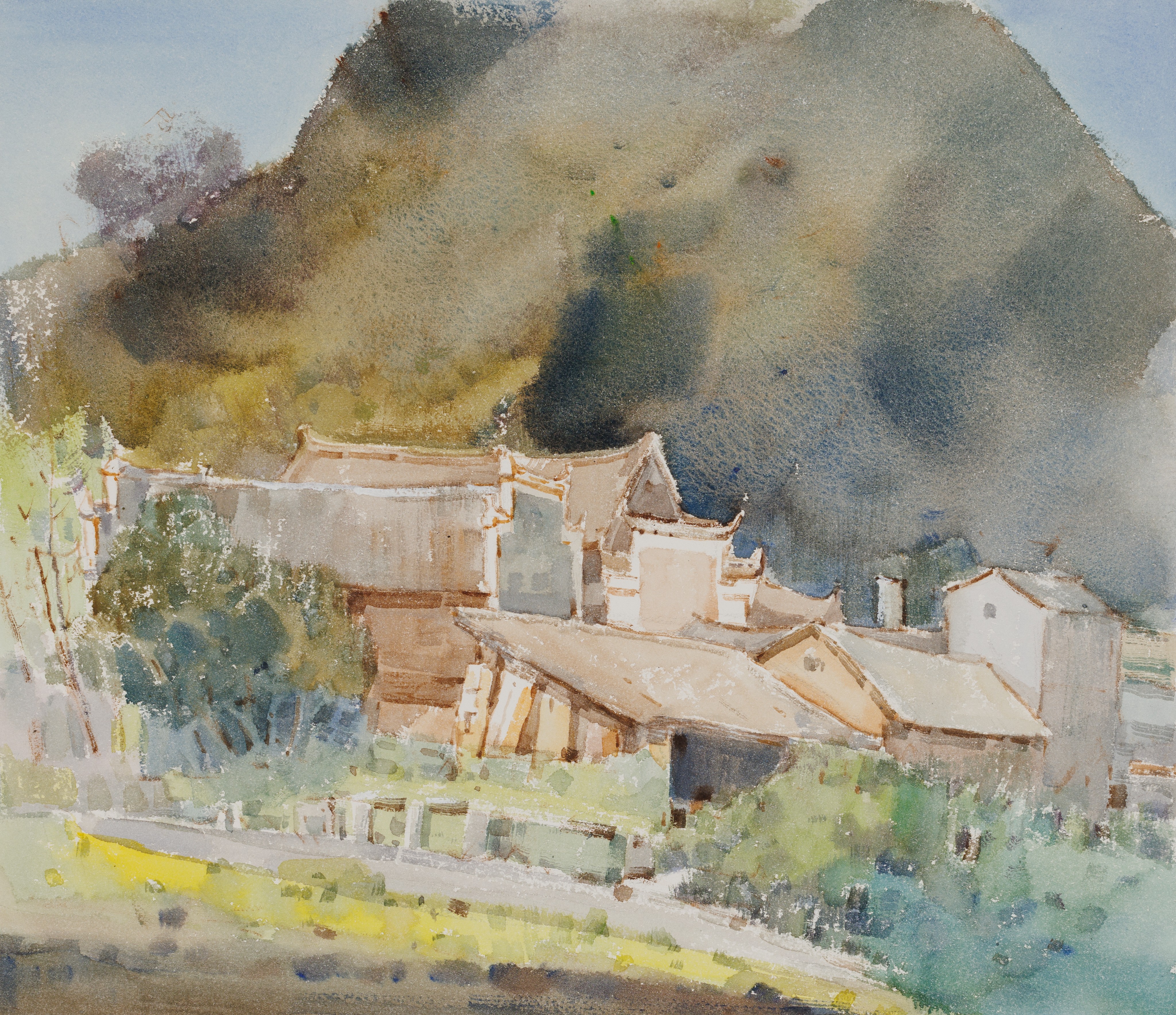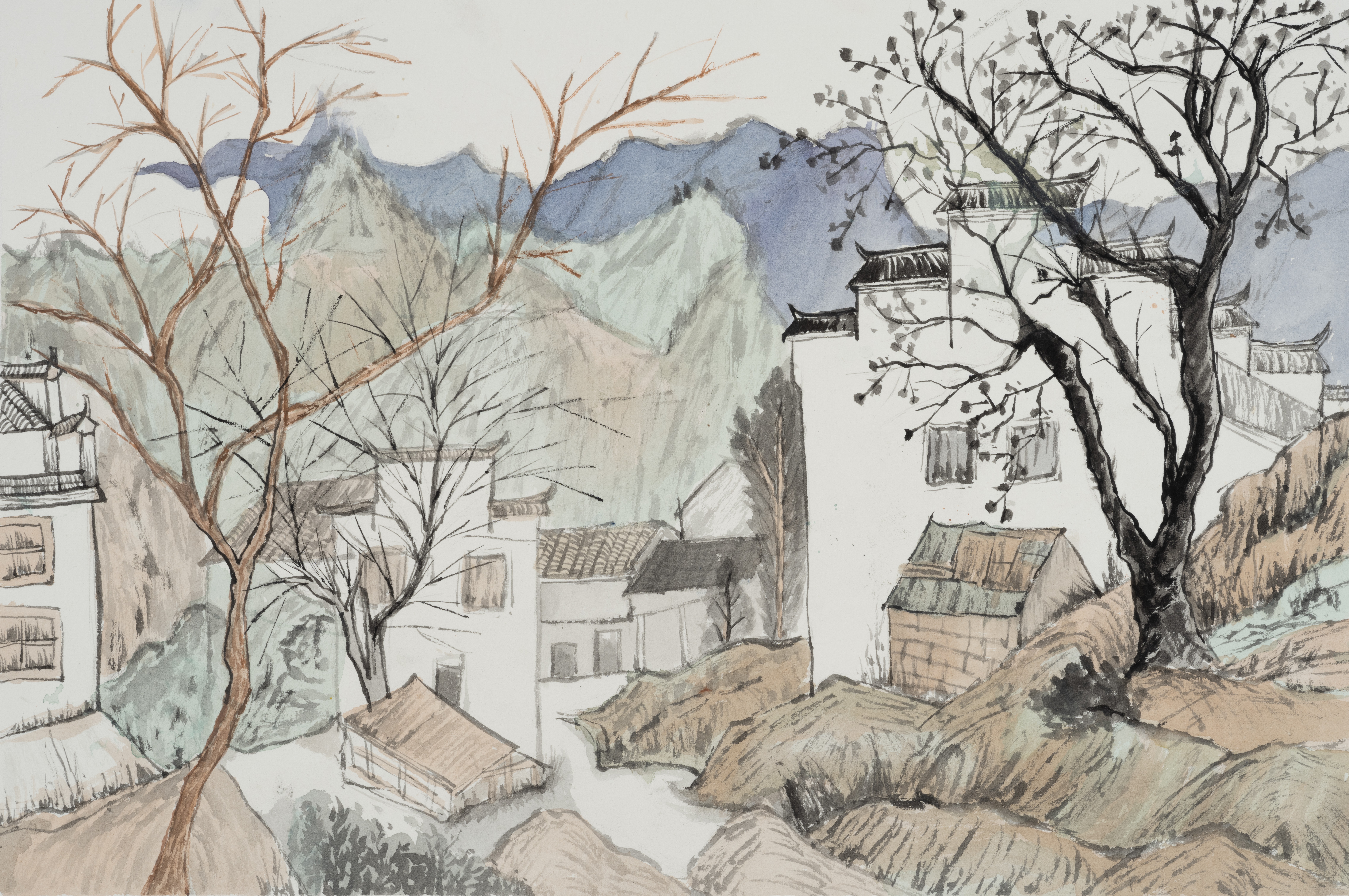 段凝,《状元村印象》,30x50cm,纸本水彩