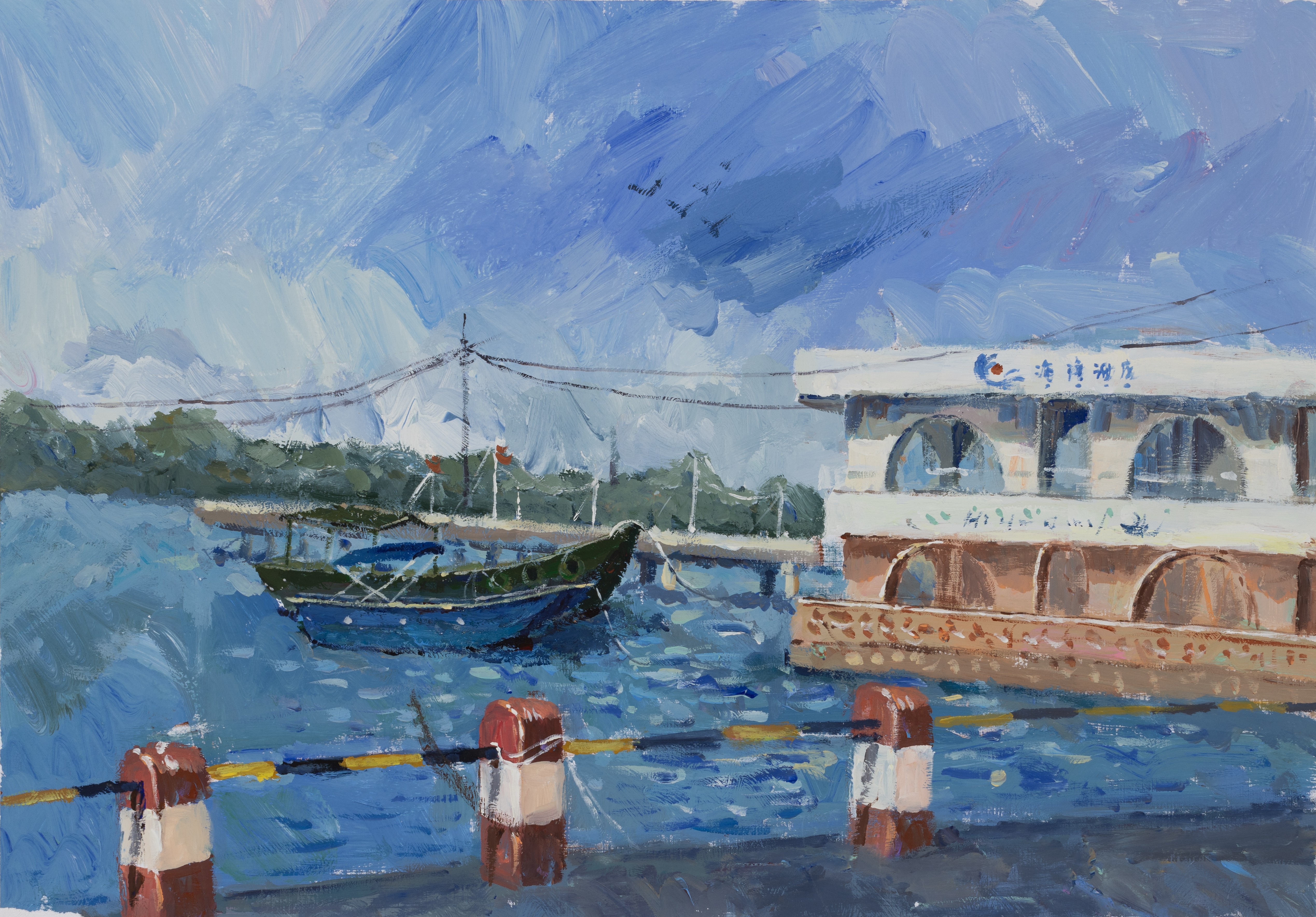 吴诗敏,美术学专业,《梦幻码头》,4开,纸本水粉
