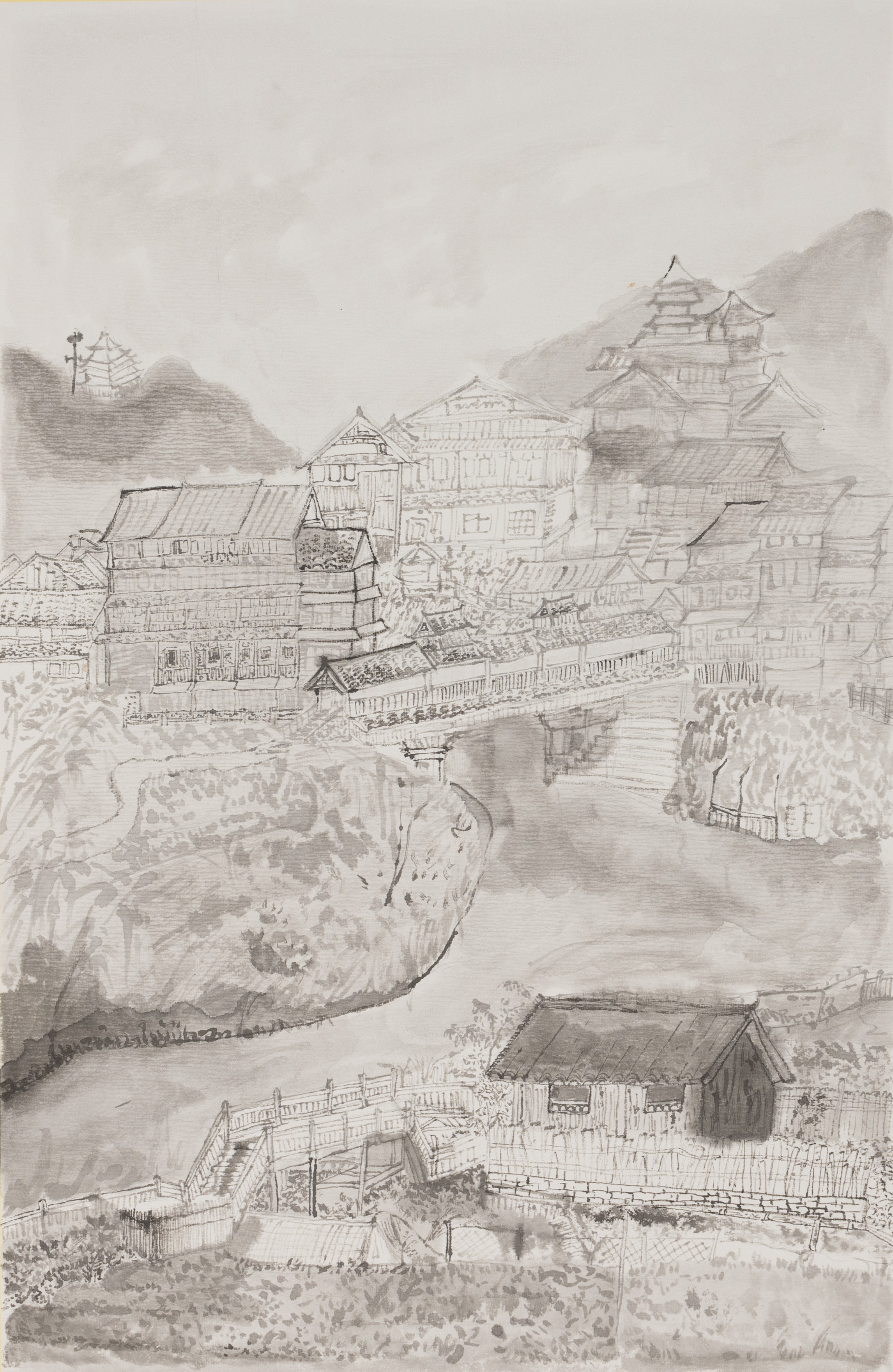 焦为好,《江楼》,50x26.5cm,中国画