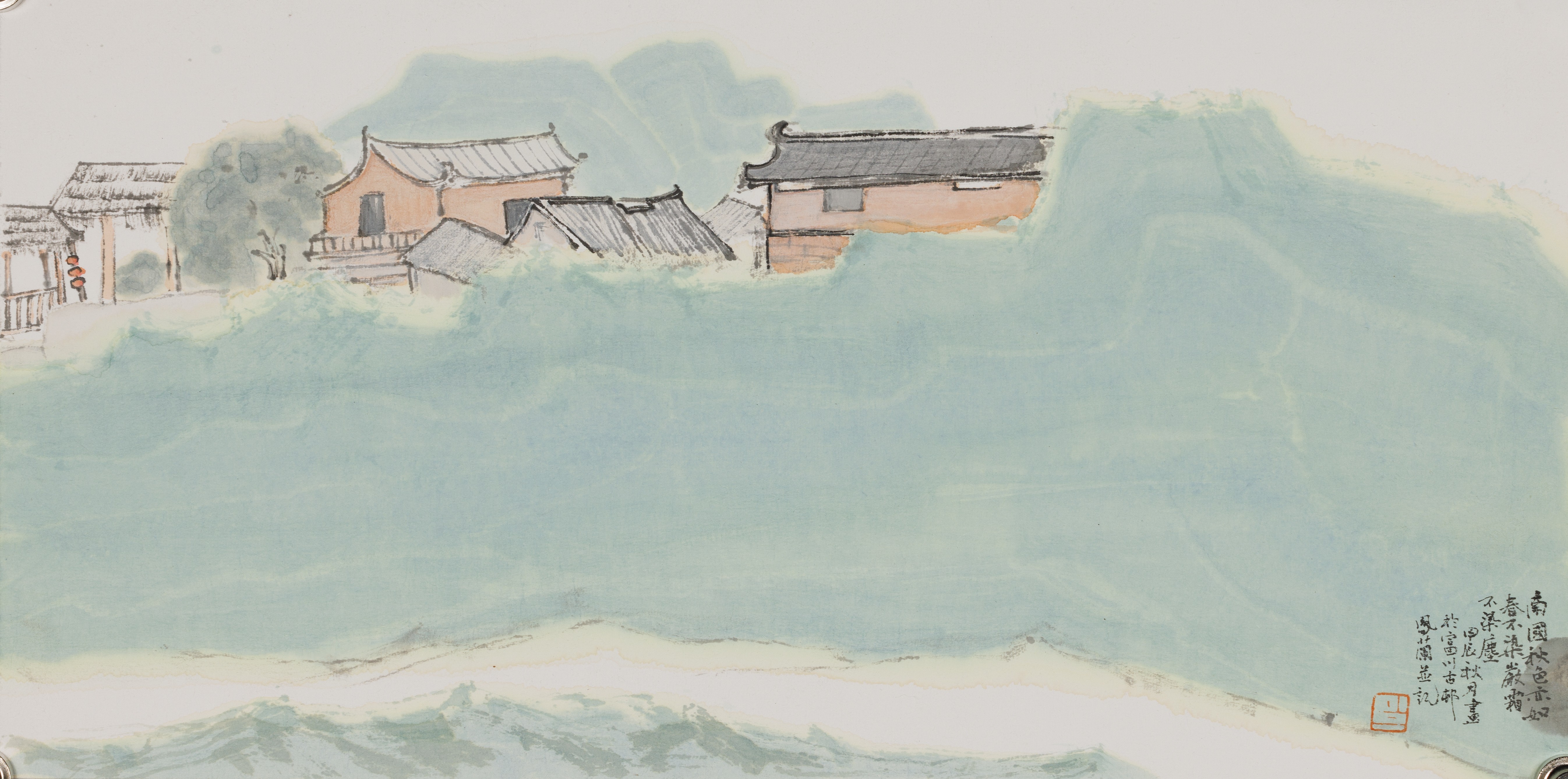 李异,《三江微尘》,33x66cm,中国画