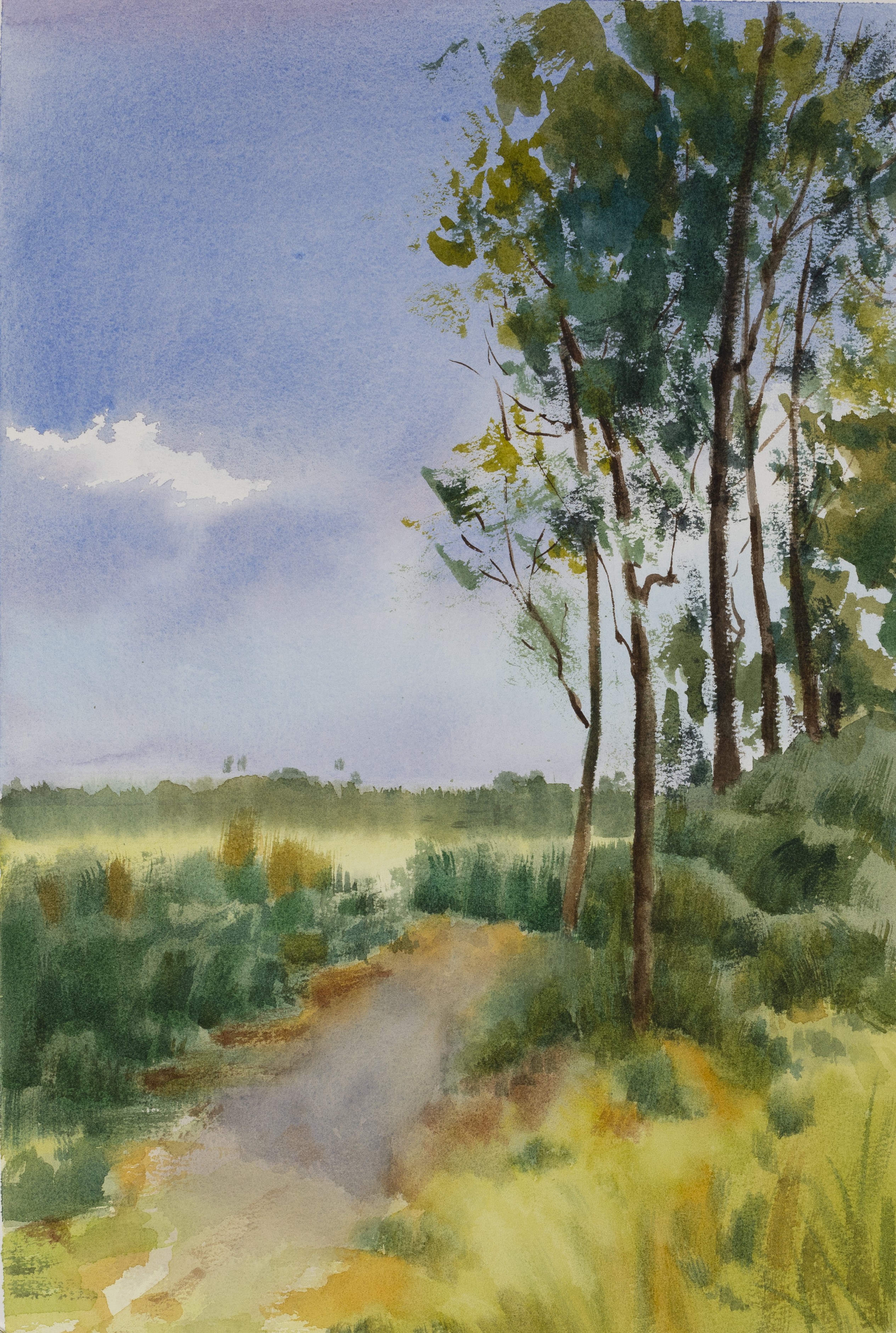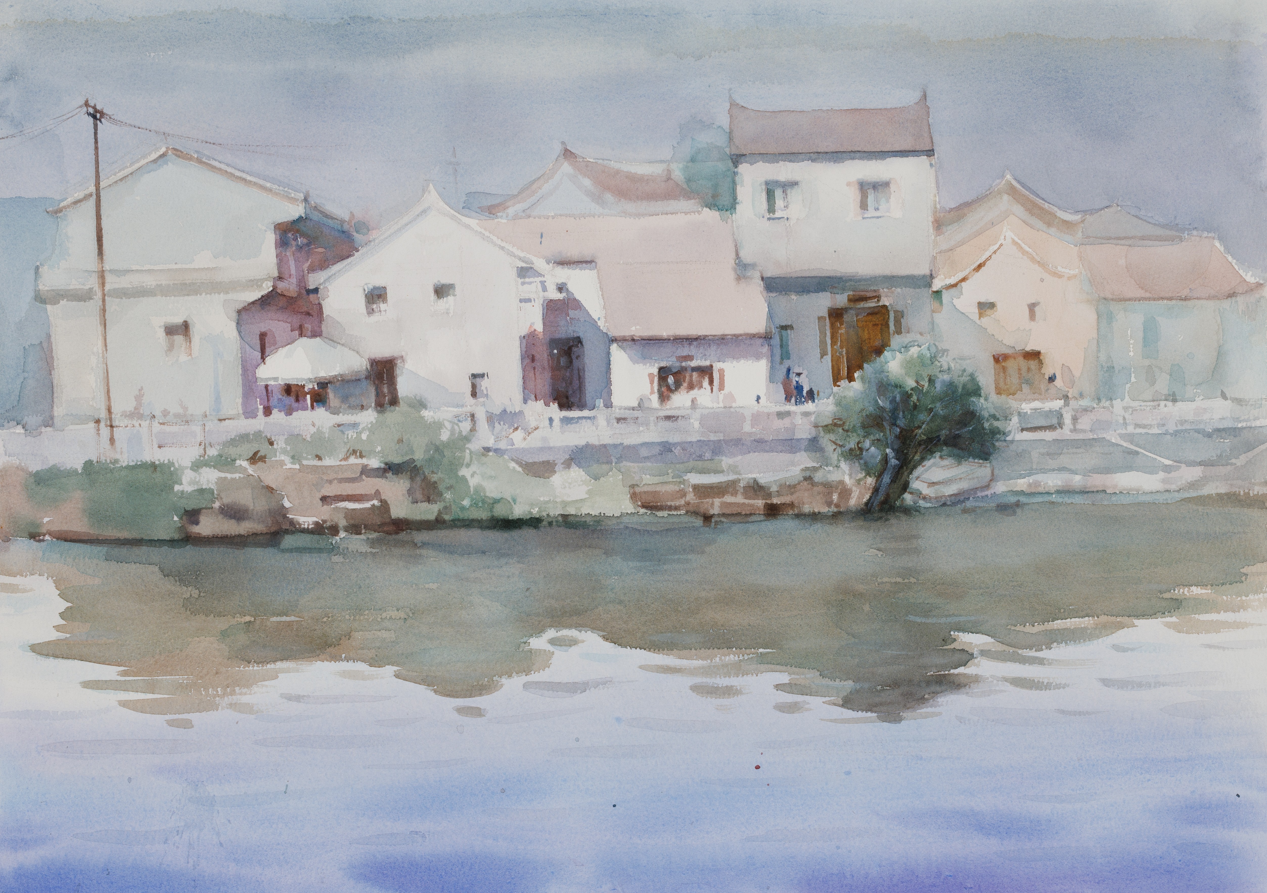 康嘉,绘画专业,《河岸边》,4开,纸本水彩