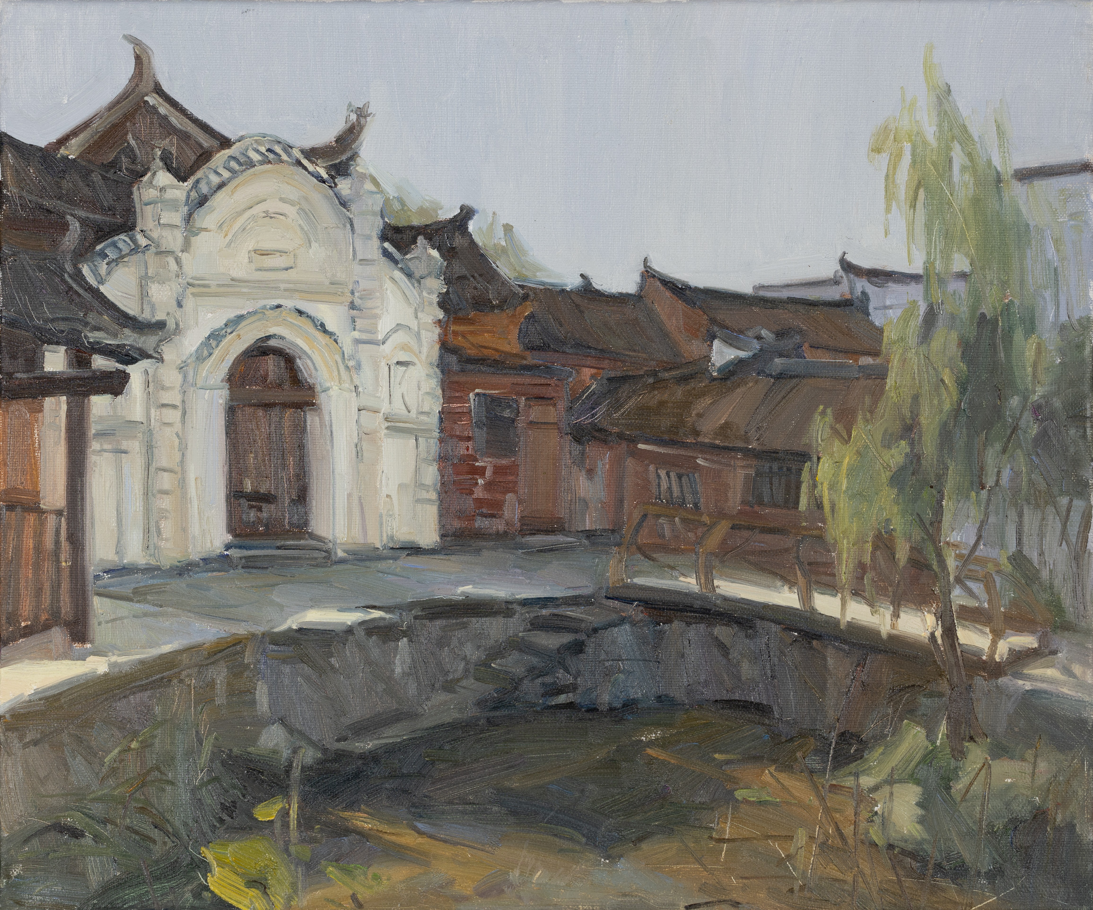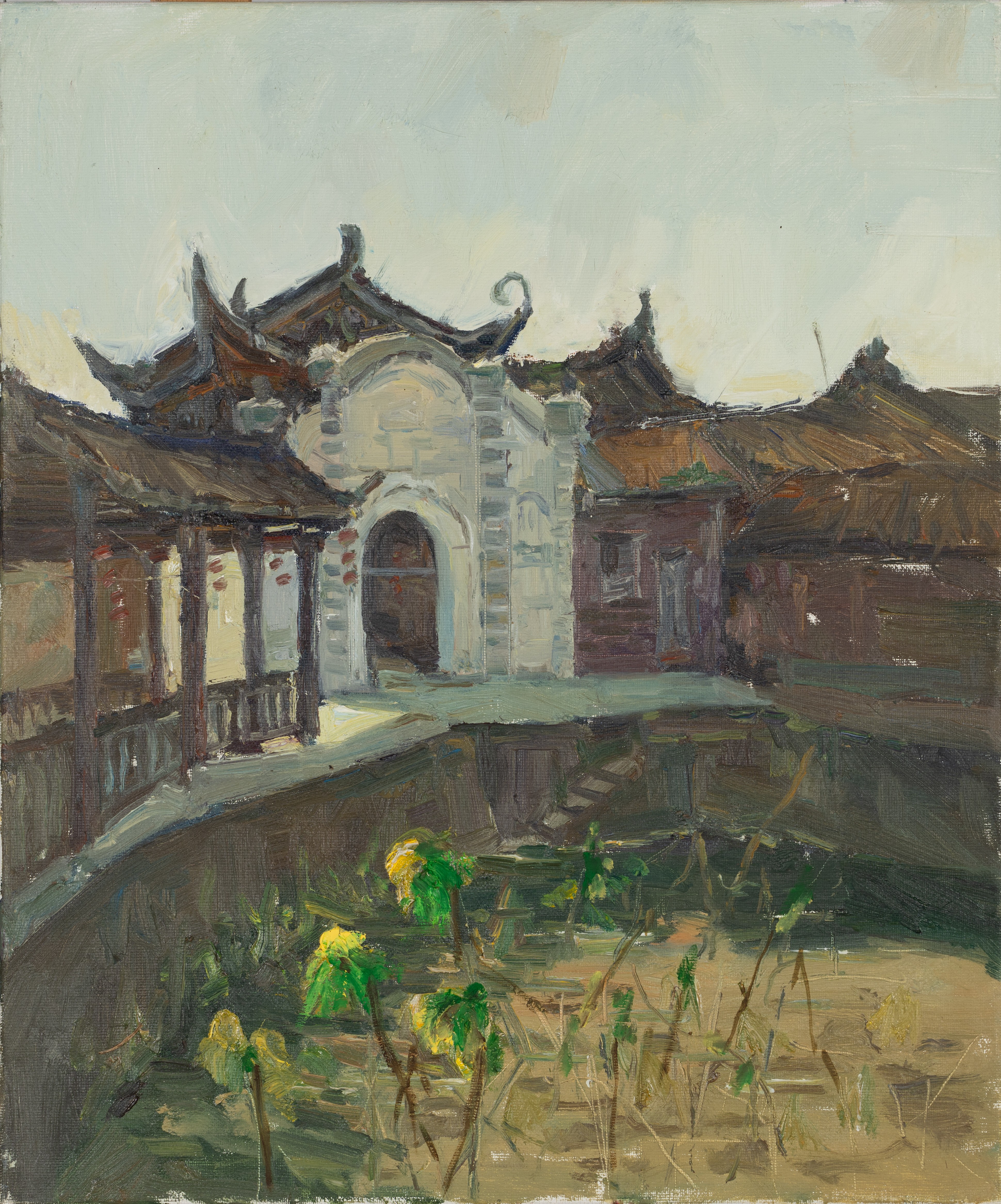 钟莹,绘画专业,《晨巷迟池》,50x60cm,布面油画
