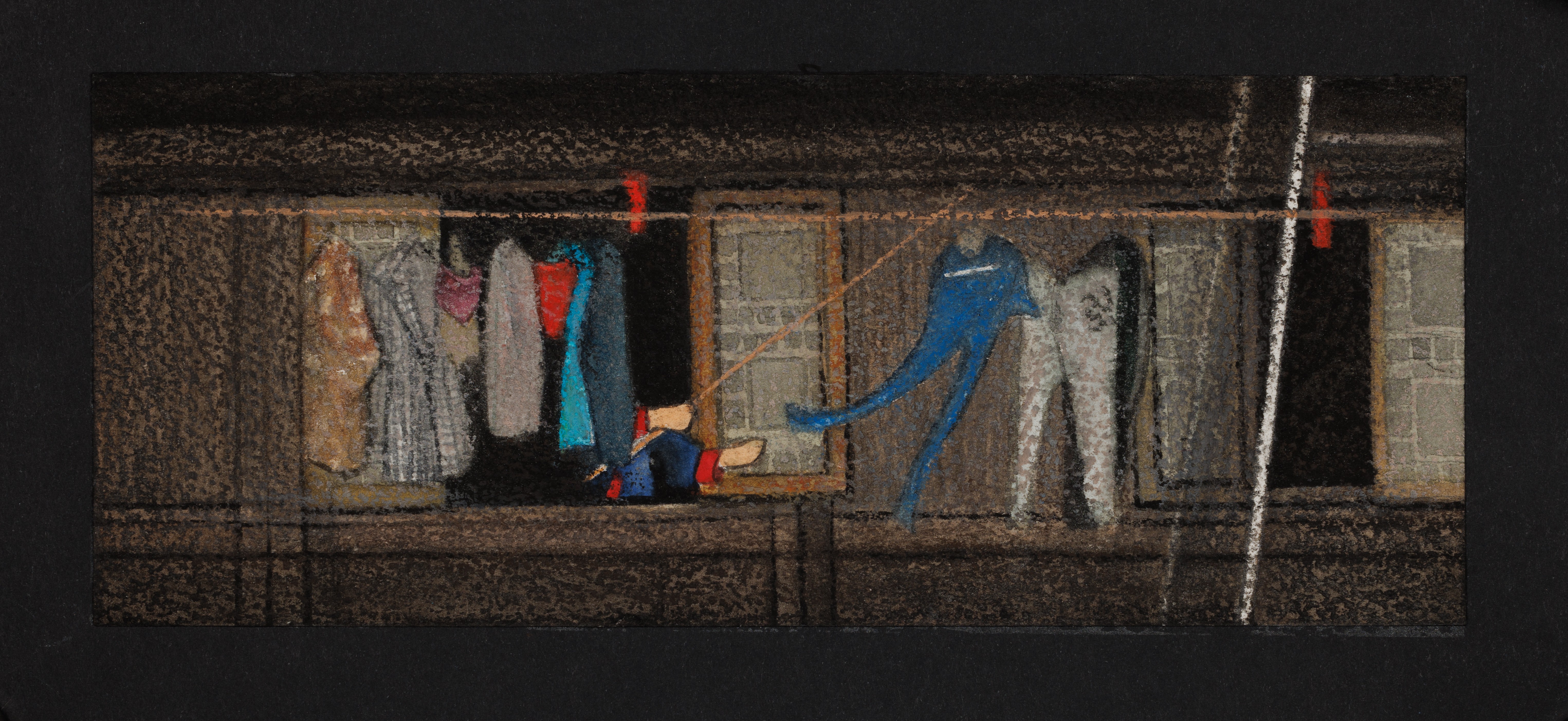 谢瑞,《窗口》《围茶》,30x15x2,蜡笔、水彩