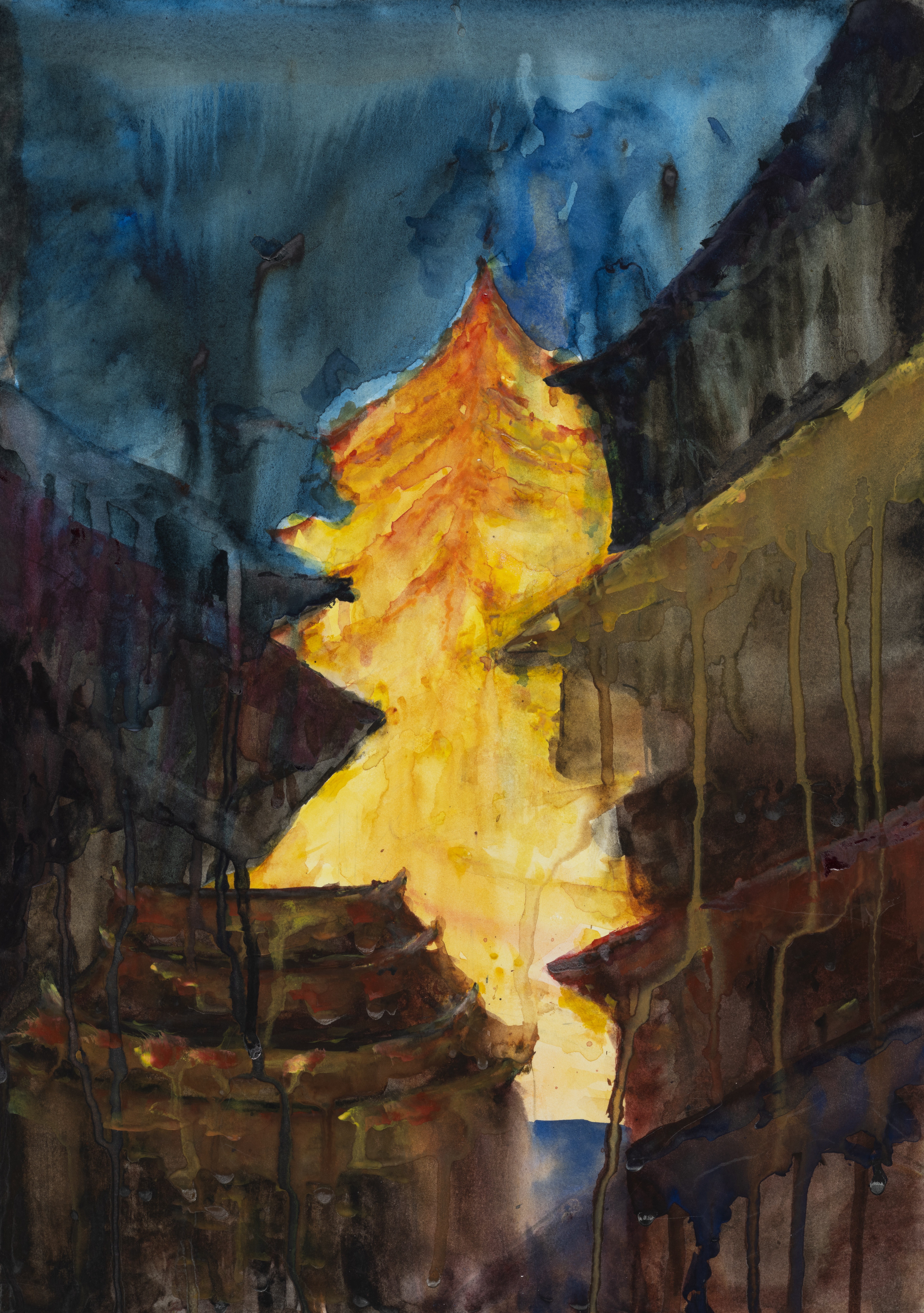 曾坤,雕塑专业,《火山岛》,4开,纸本水彩