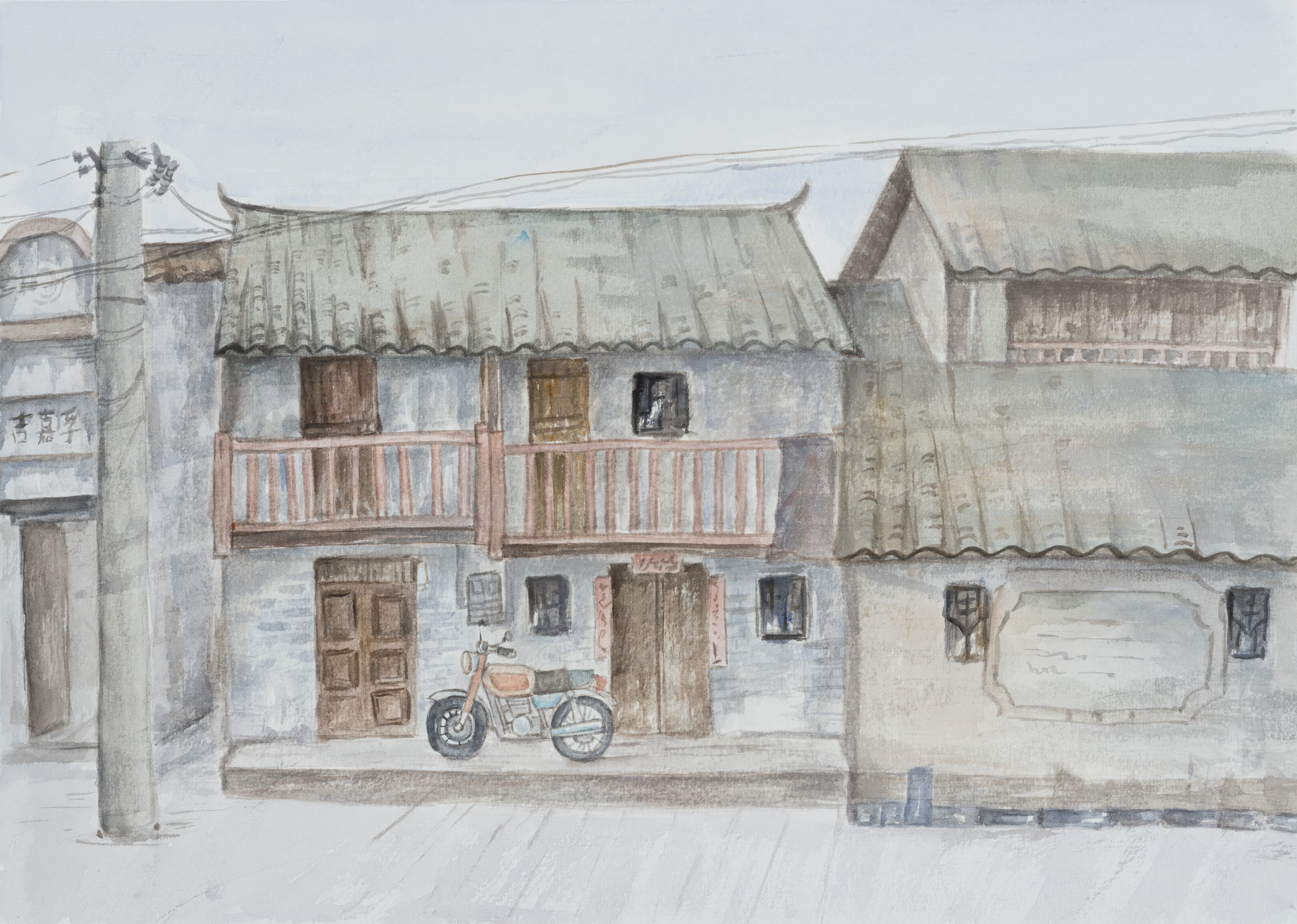 郭连,美术学专业,《街边屋舍》,39x54cm,纸本水彩