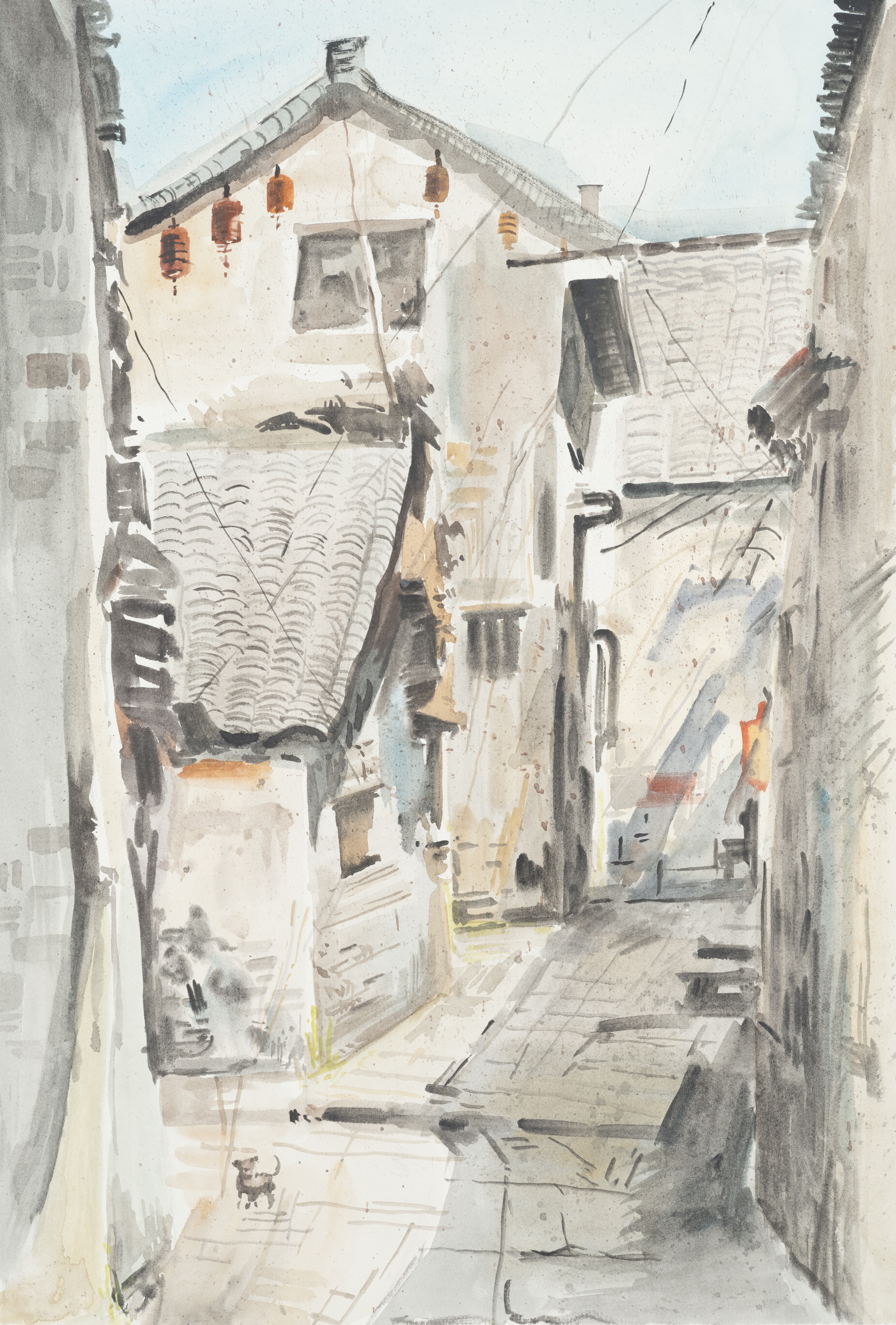 李鹏举,美术学专业,《侗寨小巷》,27x39cm,纸本水彩