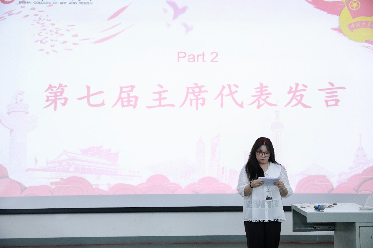 会议的第一项进程,全体参会人员起立奏唱团歌。随后,上一任分团委学生会主席王晨燕同学代表主席团发言,她回顾了过去一年学生会在各项工作中取得的成绩,分享了工作中的经验和感悟,表达了对两位老师的感激之情,并对新一届学生会成员提出了殷切期望,鼓励大家在新的学期中继续努力,传承和发扬学生会的优良传统。