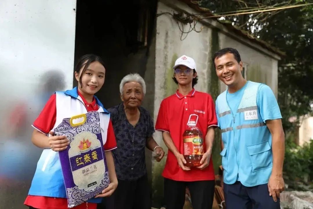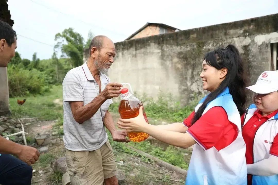 6月17日下午,志愿者们在驻村书记王东升的带领下来到红锦塘村、东大垌村、双岭村贫困家庭中,给他们捐献了大米跟油,与老人亲切交谈,询问他们的生活情况,陪他们聊天解闷。希望通过本次活动的开展,能够让尊老、爱老、敬老的良好风气在校园里和社会上日益浓厚。