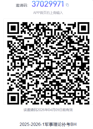 3.军事理论补考的学生于102217:00在学习通上扫码进入该班级。