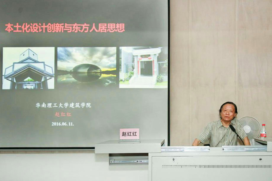 2016年6月11日19:20,华南理工大学建筑学院院长、博士生导师赵红红教授莅临我院“名师大讲堂”,给全院师生带来题为《本土化设计创新与东方人居思想》的讲座。