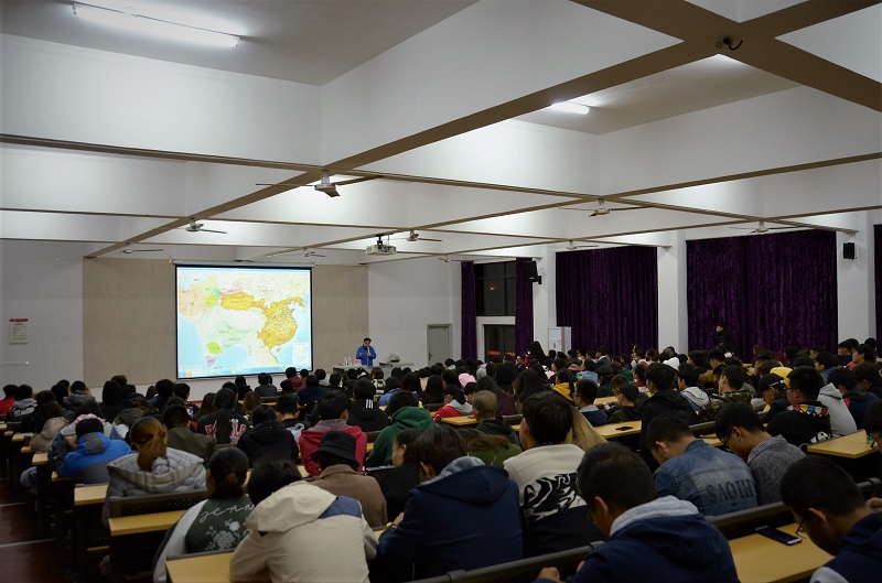 讲座开篇,陈见东教授给大家介绍了佛教雕塑与丝绸之路的文化与共同点,各朝代石窟是古代印度与中国最有特色的文化交流之一,也是丝绸之路上最能反映东西交流的文化及文化遗存。随后陈见东教授展示的汉武帝时期中国疆域图,引起同学们浓烈的听讲兴趣。