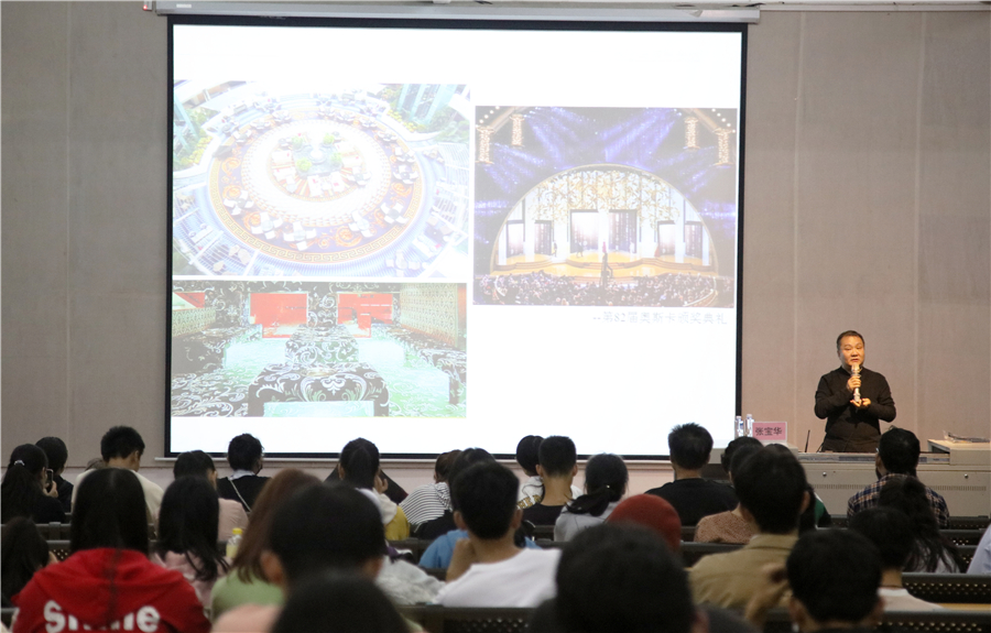 张教授还从艺术设计的具象性与抽象性分析了艺术美感如何滋养大众,提到设计的影响力与责任感、科技与艺术的结合为产品带来了新面貌与价值。并从中国传统文化在现代设计价值转化的角度,结合他本人的五个设计案例带领同学们感受设计更深层的内涵,在设计过程中应该秉持精益求精、摈弃浮躁、踏实勤奋的态度。张教授深入浅出地将流动的传统娓娓道来,增进了同学们对中华民族优秀传统艺术设计的理解,令师生们受益匪浅。