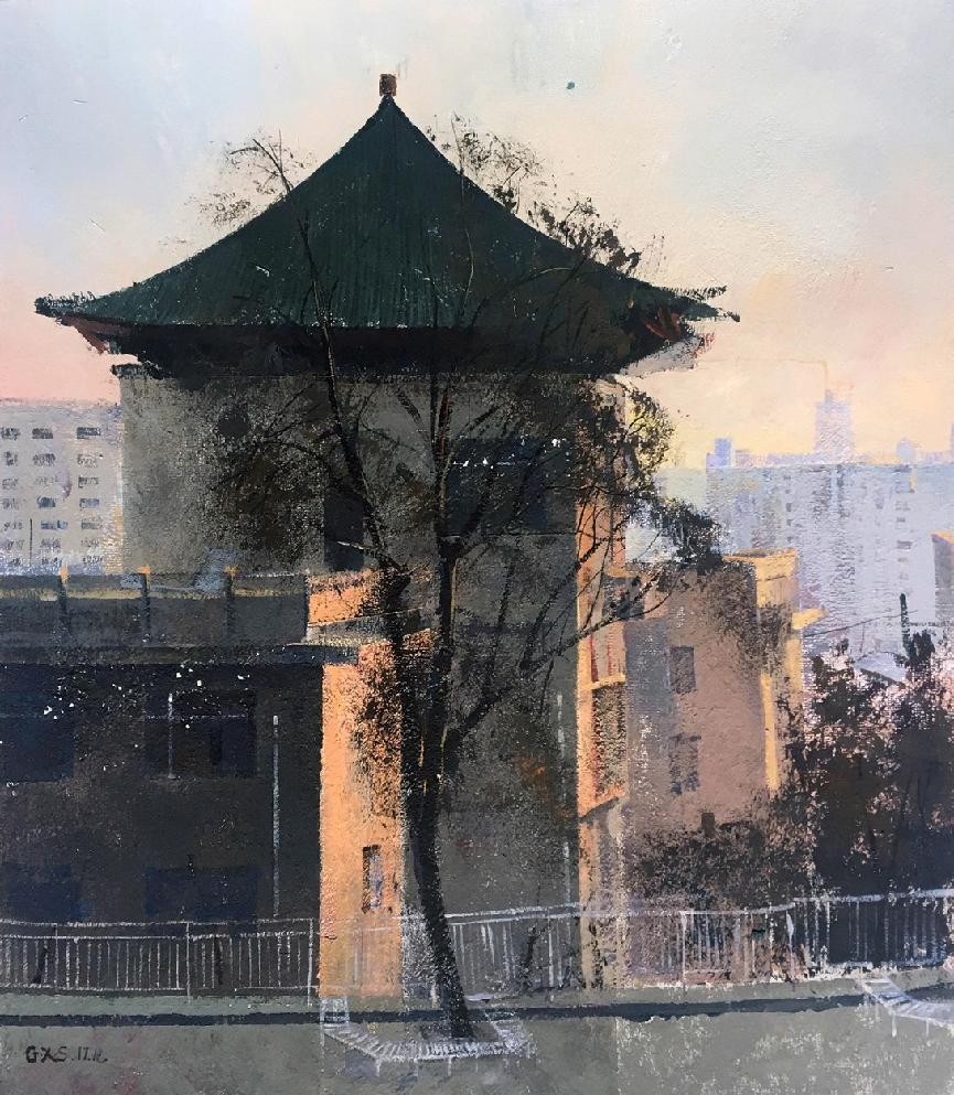 郭晓山《母校》2019 年 纸本水粉 45cm × 50cm