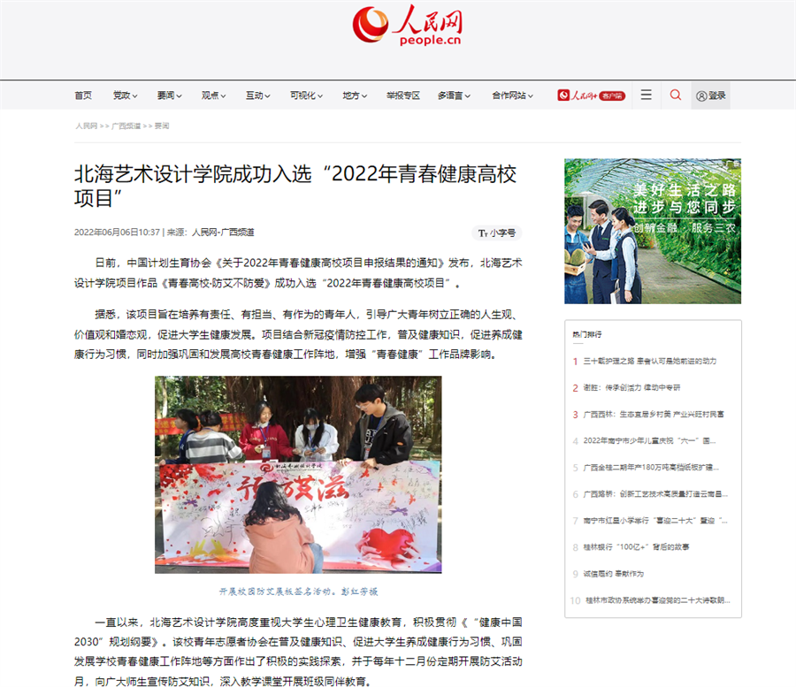 人民网:北海艺术设计学院成功入选“2022年青春健康高校项目”