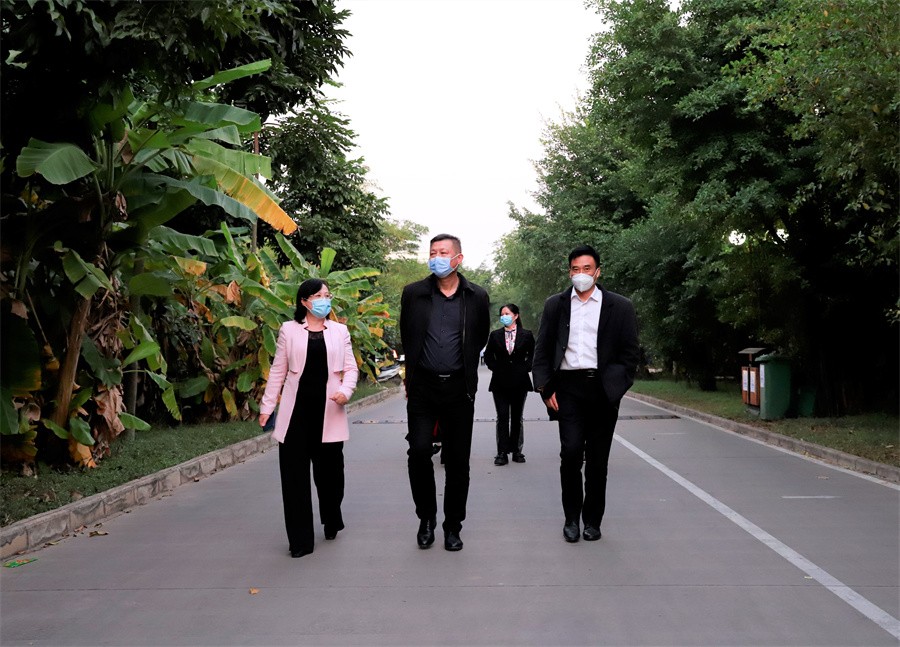 会后,巡察组专家一行还参观了学校校园环境、石刻文化林、南区建设工程等。(周小琪/摄)