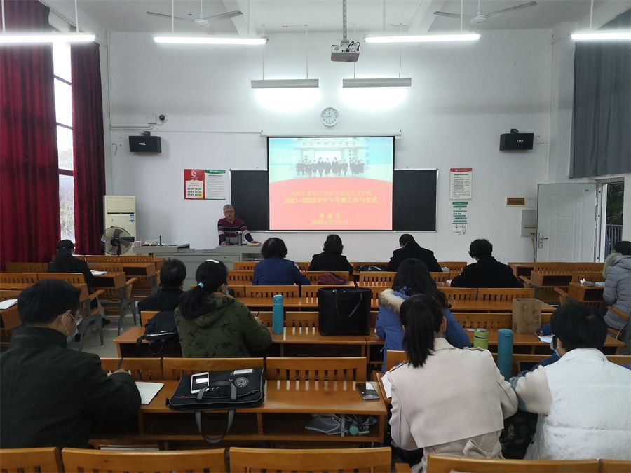 2月11日上午,马克思主义学院在西校区伦理楼102教室召开2022年春季学期开学工作布置会(网络同步),因疫情影响暂时没有返校的老师通过网络同步参加会议。院长姜献生对新学期重点工作进行布置,重申教学纪律,并对学院全体教师进行了题为《北海艺术设计学院马克思主义学院建设、思政课教师定位与要求》和《北海艺术设计学院思想政治理论课教学模式》的专项培训。他要求思政课教师政治意识要强、人格品性要正、慎言慎行慎独、关心爱护学生,做到研究有禁区、教学有纪律,不断努力打造“五型”教学单位、“四栖四大六动”教师队伍,持续深入推进“四位一体八化五结合”教学模式。副院长罗秋梅详细安排了近期教学主要工作,综合办公室副主任王佳碧主持会议,学院全体教职员工参加会议。