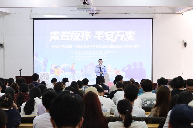 为推动构建全市“青年民警+团干部+青年志愿者”反电诈宣传新格局,引导全市青年在平安北海、法治北海建设中发挥生力军和先锋队作用,在奋力谱写中国式现代化北海篇章生动实践中贡献青春力量,3月24日,“广西青年反诈联盟”启动仪式暨学雷锋志愿服务主题活动(北海分会场)在我校举行。本活动由北海市公安局联合共青团北海市委、北海市教育局、国家金融监督管理总局北海监管分局、北海市通管办与我校共同举办,北海市副市长、市公安局党委书记、局长毛军出席活动并讲话。我校党委书记范范徽忠、副校长刘朝雄参加活动。