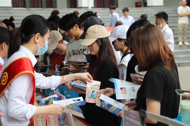 与此同时,中国移动、中国联通等4大运营商以及中国银行、农业银行、工商银行等5家银行借助职能优势纷纷在会场外搭建起反诈“摊点”。通过共享反诈经验、发放反诈宣传资料向学生们开展深层次、多方位的反诈宣传促使反诈宣传工作奏响“大合唱”。