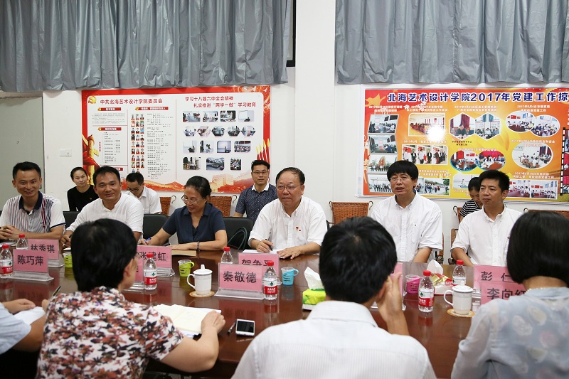 市委组织部部务会成员、“两新”党工委专职副书记陈传洋对党建做了简单的说明,并表示在党建经费上大力支持北海艺术设计学院党建工作。自治区高工委副书记秦敬德做了重要讲话,表示对我校办学的肯定,坚持以立德树人为本,加强意识形态的建设,加强党组织自身建设,抓好中心组学习,在“两学一做”的推动下办出学校特色、亮点、凸显出党员干部的先锋模范作用。