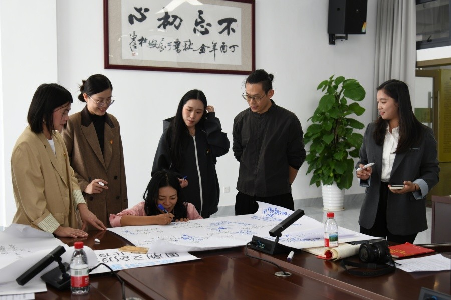 为深入学习贯彻党的二十届四中全会精神,全面落实公办高校与民办高校党建和思想政治工作结对共建工作要求,2025年11月28日,北部湾大学陶瓷与设计学院到我校设计艺术学院联合开展了“党建引领聚合力 共建共融促发展”主题交流活动。双方在艺德楼八楼会议室召开座谈会,共同探讨新时代背景下党建与业务双融双促的新思路与新方法,并开展“学习贯彻党的二十届四中全会精神”专题读书班。