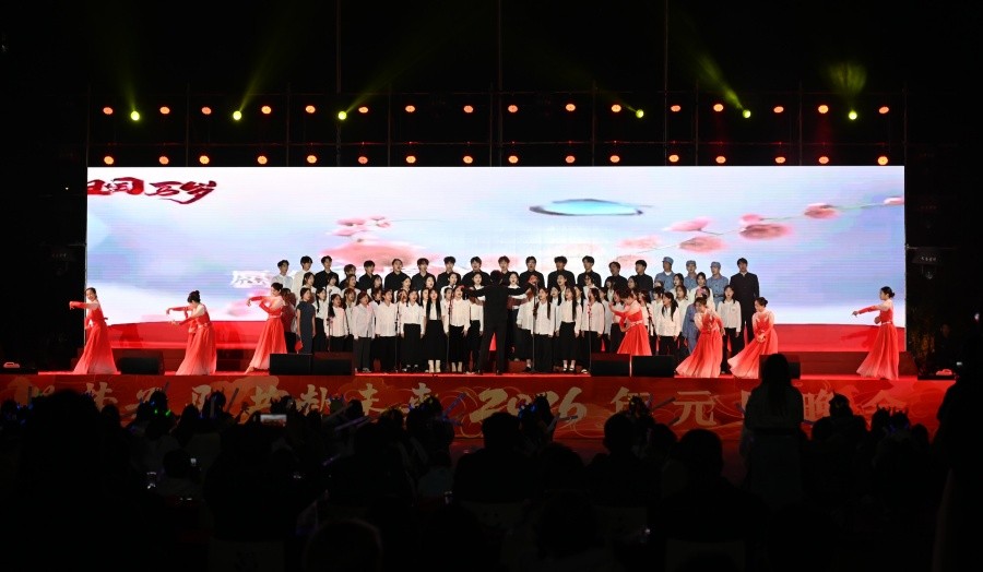 日迈月征,朝暮轮转。时光的列车缓缓驶过2025的站台,即将抵达2026。12月28日晚,我校于西校区操场举办“艺梦为马,共赴未来”2026年元旦晚会。学校党委书记覃宪儒,校长卢新华,常务副校长胡胜,党委副书记陈毅华、彭仁,副校长陶立阳、黄侃明、包建明、何煜以及各二级学院负责人出席晚会现场,与广大师生一同沉浸在这场融传统韵味与青春活力于一体的晚会盛宴,共话新岁愿景。