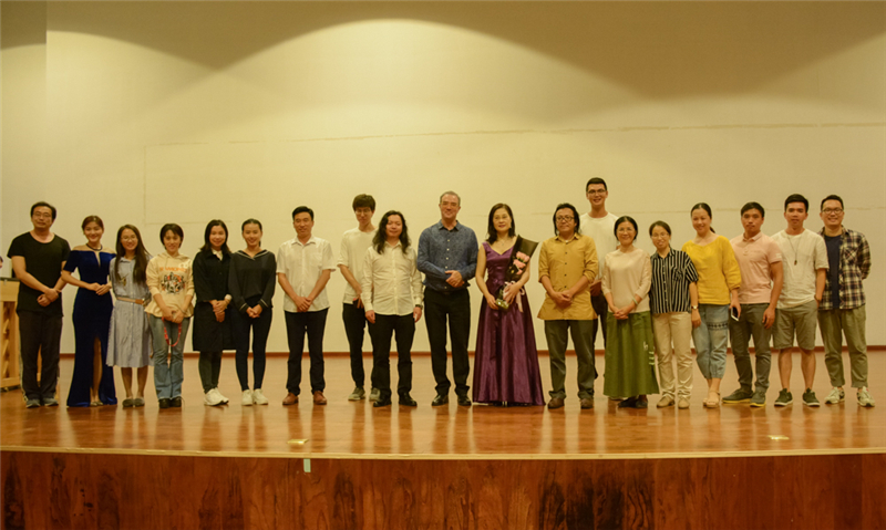 演出结束后,我校副校长、教育学院院长黄艳芳为两位艺术大师颁发了证书,聘请埃瑞克·佛朗塞利和郝雪雯为我校的客座教授,并合影留念。