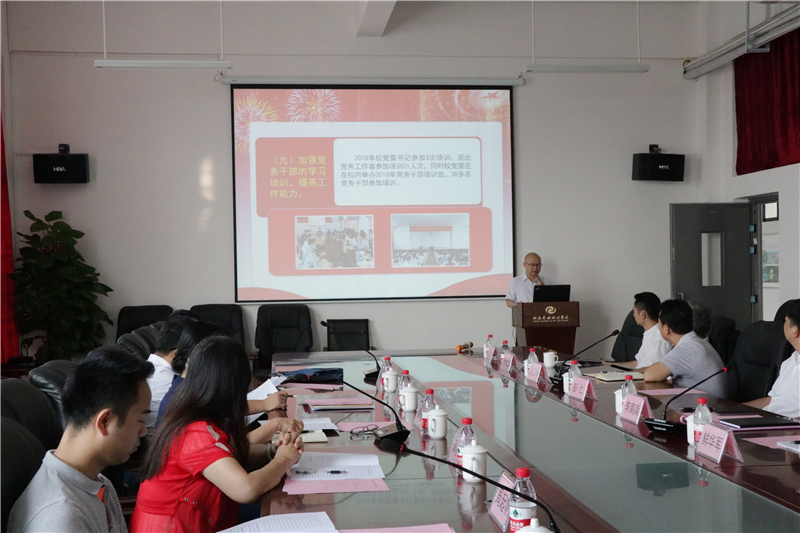 汇报会上,党委书记李高南代表学校党组织就学校党的建设、意识形态责任制落实、高校思想政治工作质量提升工程、思想政治理论课建设等情况向专家组进行了专题汇报。随后专家组通过查阅材料、召开师生座谈会、深入课堂听课和实地调研等方式,详细了解学校开展党建工作和意识形态工作情况。