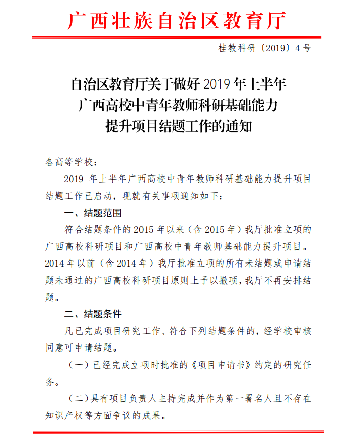 附件1:自治区关于教育厅关于做好2019年上半年广西高校中青年教师科研基础能力提升项目结题工作的通知f.vi