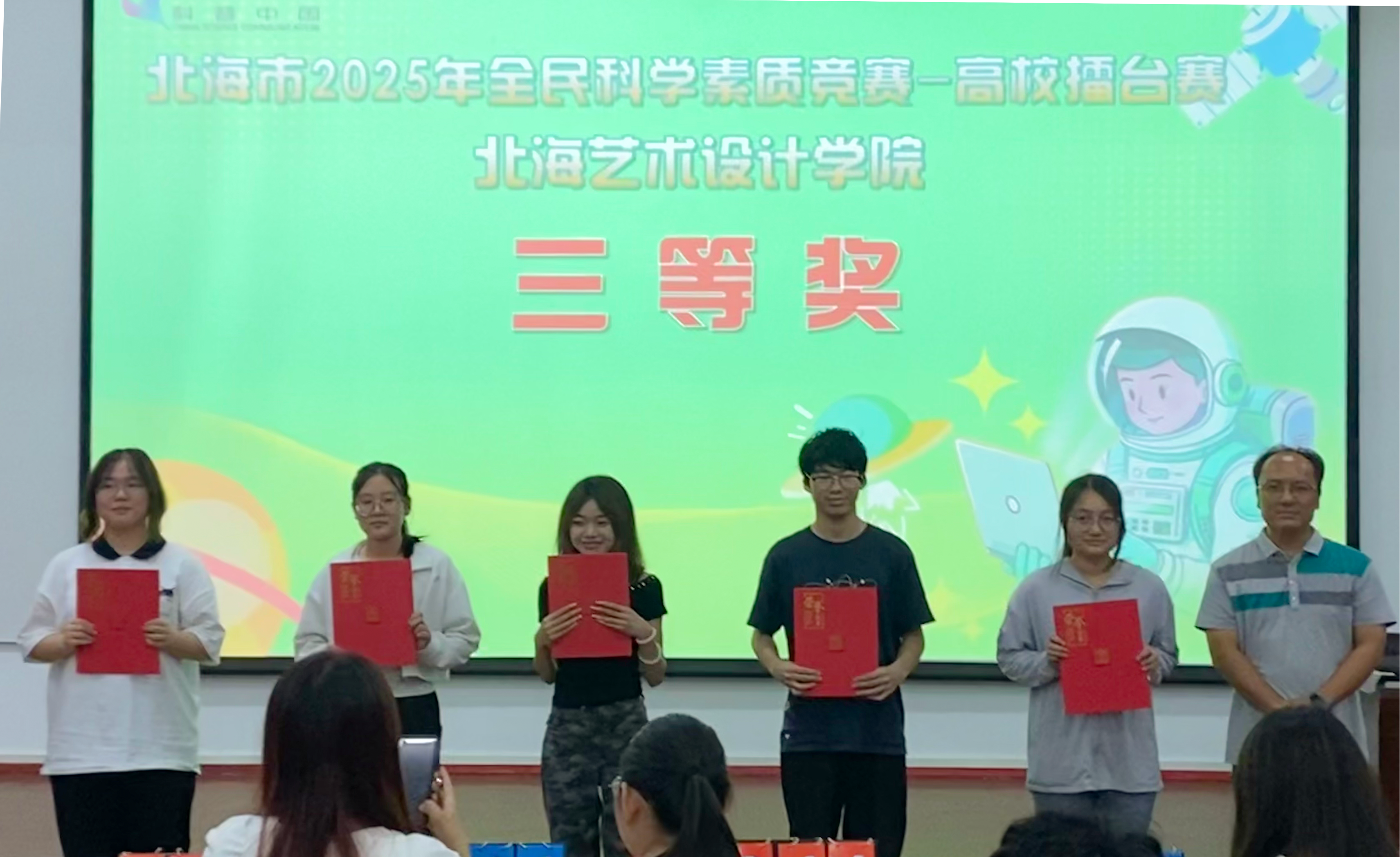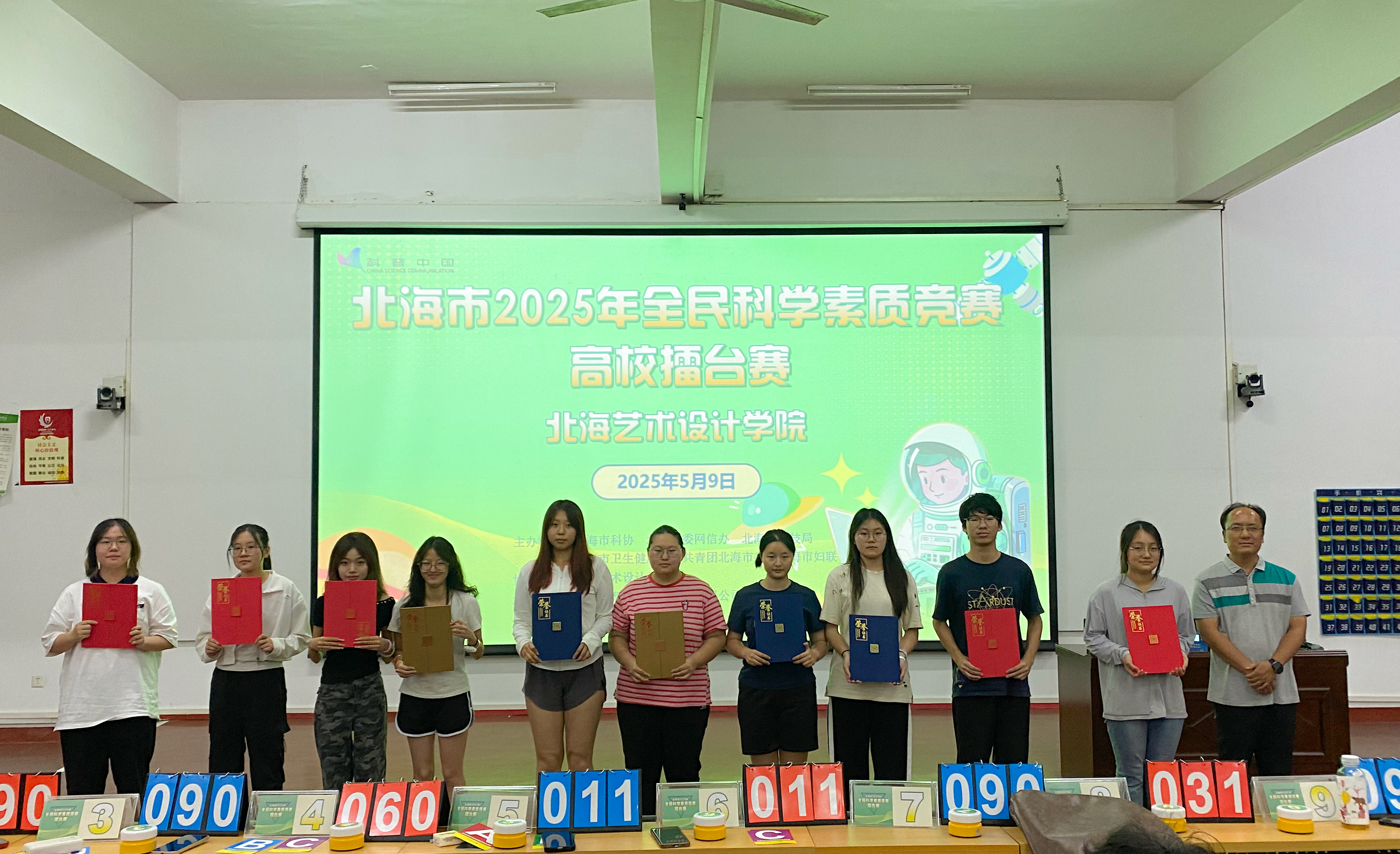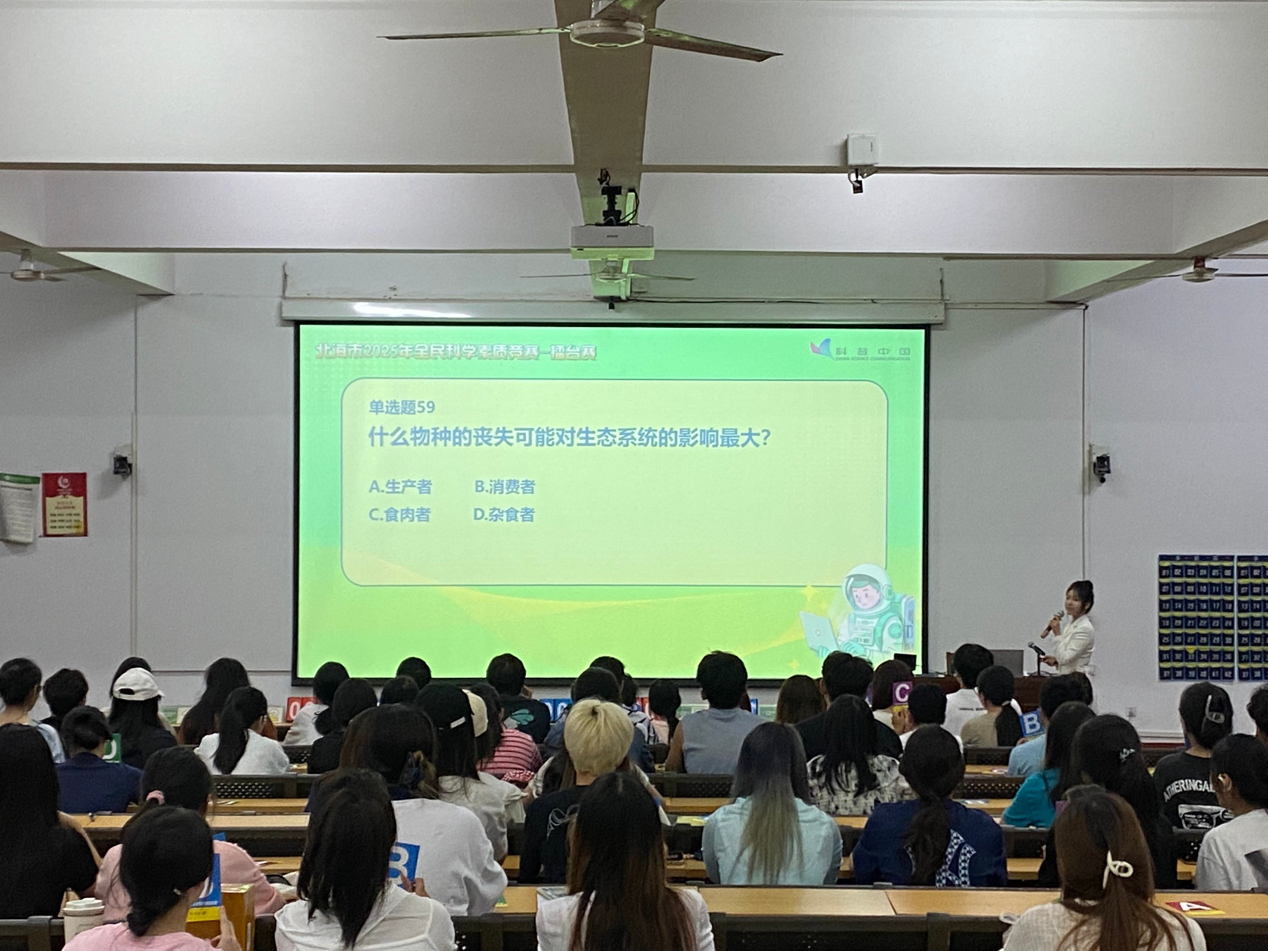 为深入贯彻《中华人民共和国科学技术普及法》和《北海市全民科学素质行动规划纲要》,全面提升我市公民科学素质水平,激发青年学子科学探索热情,培养创新思维与实践能力。我校于5月9日在西校区伦理楼107举办北海市2025年全民科学素质竞赛北海艺术设计学院百人赛。