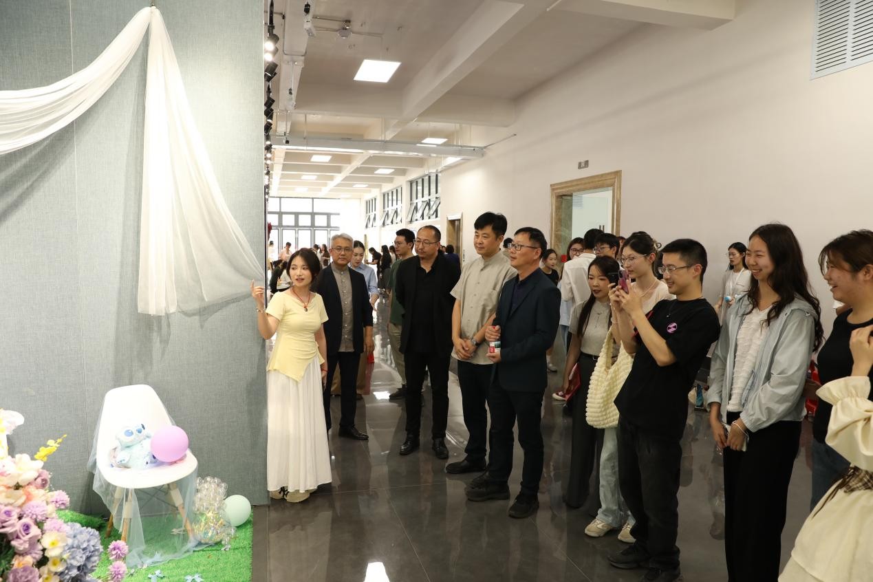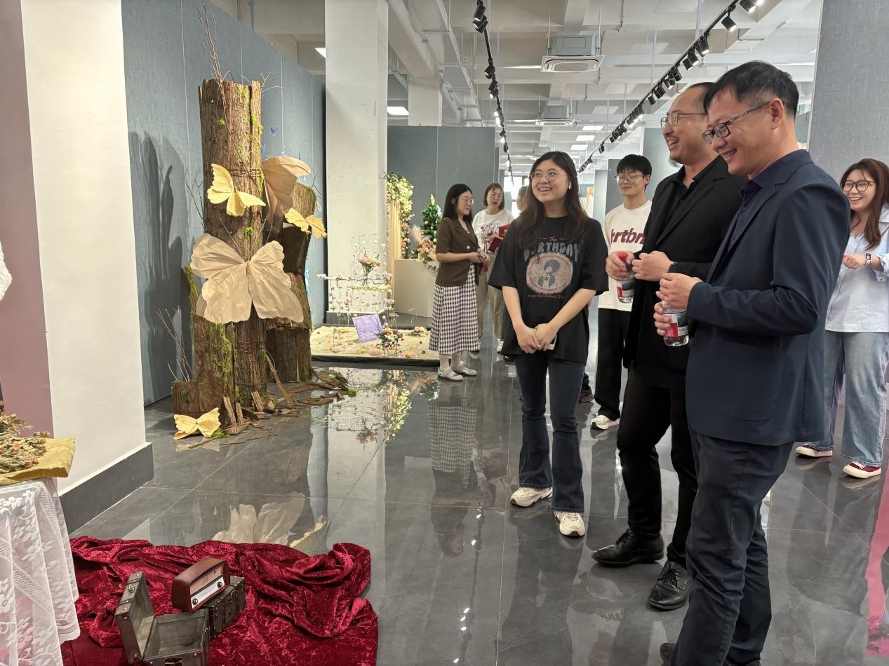 蔡世伟副院长在发言中对学生所展现出的审美感知、创意表达和价值传播给予了充分肯定。他表示,此次展览展出的作品精彩呈现了主题橱窗美陈设计的独特魅力,充分体验了工艺与材料的对话、比例尺度与色彩韵律的把控,鼓励学生借由创新设计深入探讨空间叙事与商业美学的巧妙融合。
