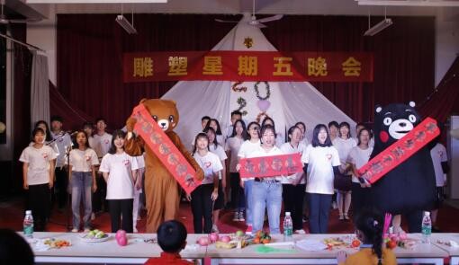 2020年1月3日晚上7:30,我校美术学院雕塑系于西校区艺术楼一楼举办了一场特别的“星期五晚会”。本场晚会由朱余婷和龙睿杰主持,参加本次晚会的有美术学院副院长王习银、办公室主任焦伟娜,教研室主任张湘中、雕塑系副主任金凯婧、教师程宣睿、郭刚以及雕塑系全体师生等。