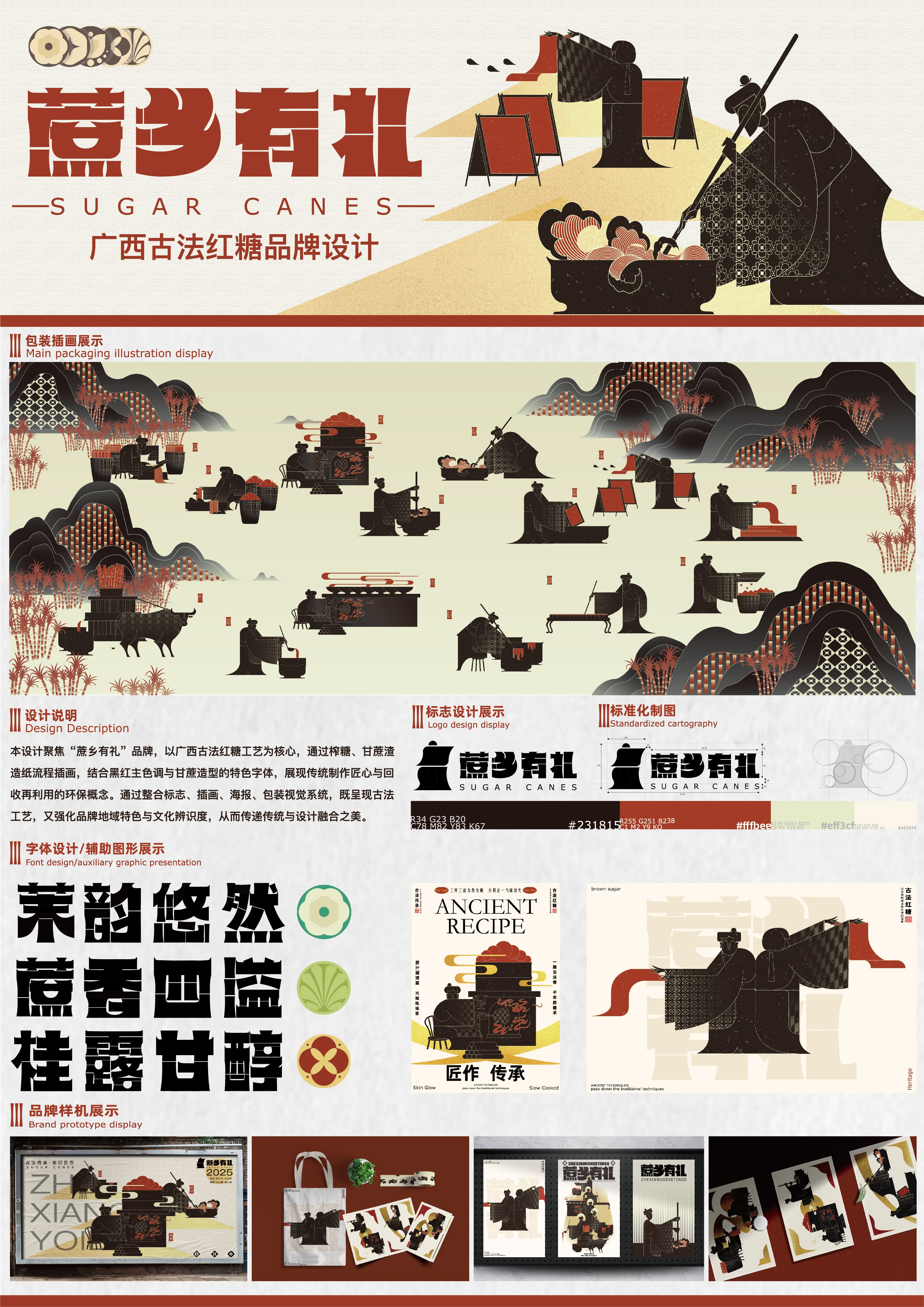 作品名:蔗乡有礼——广西古法红糖品牌设计     作者:黄圳烨、袁志祥、吴兴