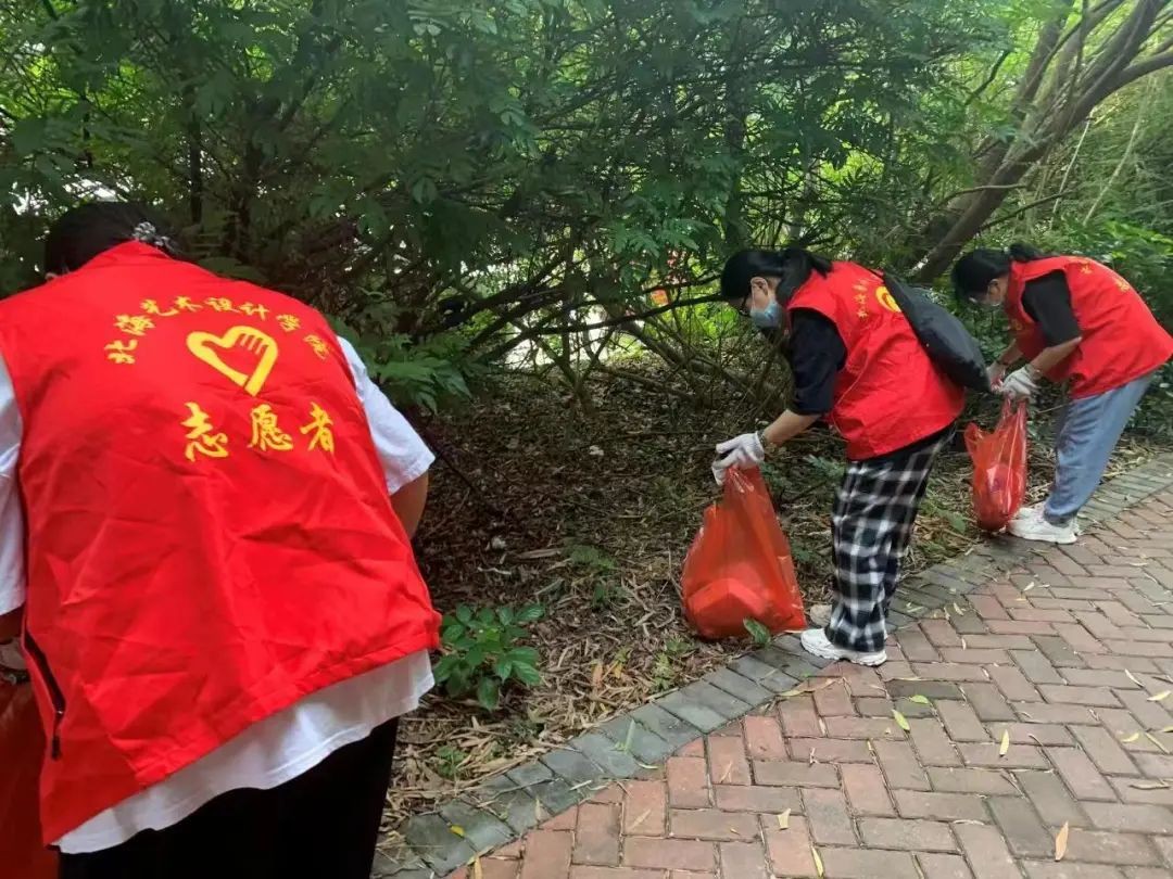 志愿者整装完毕,手持垃圾袋、钳子等清洁用具在学校周边开始行动,对绿化带、人行道等地方进行着重清理,用实际行动让街道恢复了原本干净整洁的样子。
