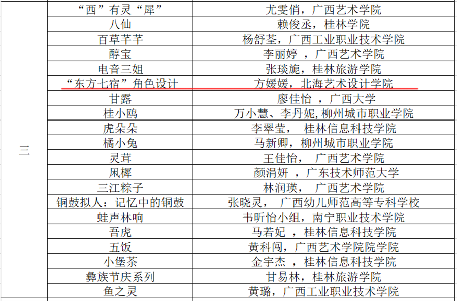 近日,由广西壮族自治区文化和旅游厅、自治区教育厅、自治区科学技术厅、自治区农业农村厅、自治区商务厅、自治区国资委主办,广西广文创意数字科技有限公司承办的“漫绘广西,秀展八桂” 2022广西金桂国漫大赛公示了获奖名单。我校动画与传媒学院共获奖11项,其中场景类二等奖3项、三等奖1项、优秀奖1项;动漫角色设计类二等奖1项、三等奖1项;广西特色文化类三等奖1项、优秀奖3项;孙永辉、 虞德强、李宗毅、吴锡红等老师荣获优秀指导教师奖;动画与传媒学院获优秀组织奖。