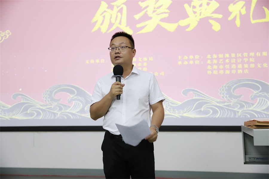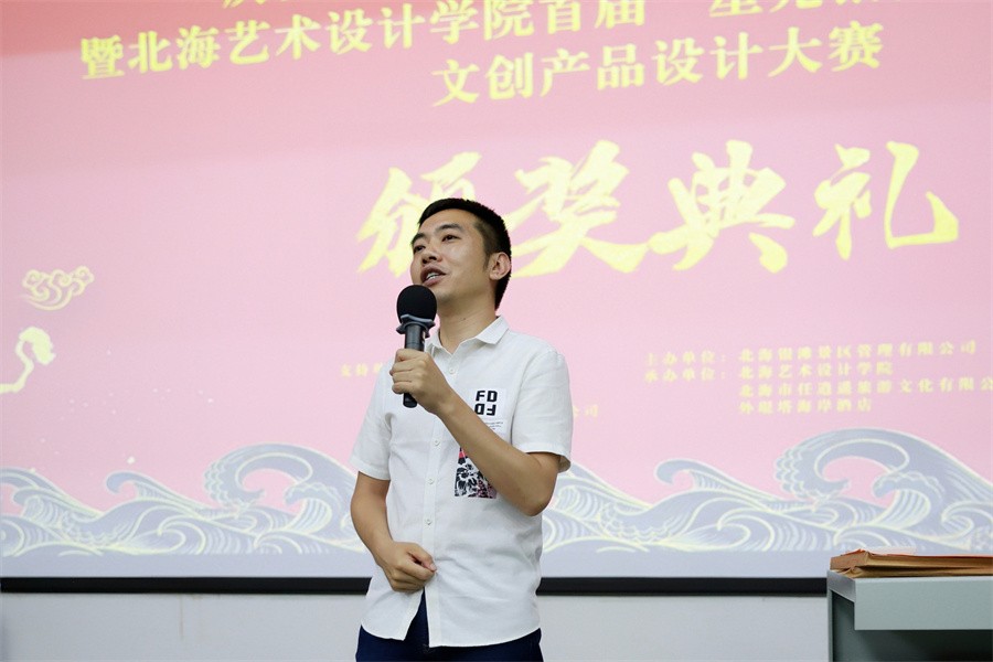 颁奖典礼上,北海旅游集团有限公司副总经理镇威在讲话中指出,北海市委市政府高度重视国家级和度假区的创建工作,北海银滩晋升国家级旅游度假区是成为了北海的一块金字招牌,“星光银滩,以海回响”文创产品设计大赛以北海银滩跻身国家级旅游度假区为契机,也开启了北海旅游集团有限公司和北海艺术设计学院校企合作的新篇章。