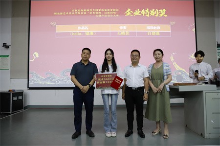 自此次大赛开启,我校高度重视,迅速组织相关专业师生组建队伍参赛。学校师生围绕“星光银滩,以海回响”的主题,贯彻大赛创新创意设计的理念,结合北海地方旅游发展和海洋文化资源特点,设计了一系列具有北海南珠文化地域特色和银滩海洋文化亮点的高艺术品质创意设计文创产品。参赛作品从文化立意、创意水平、艺术表现力、技艺水平等方面都体现了较强的感染力和吸引力,是聚力北海文化、创意驱动文旅发展的有效载体。在此次大赛中,我校共斩获企业特别奖1项;金奖2项;银奖2项;铜奖3项;优秀奖10项;入围奖41项;优秀指导教师5人;优秀单位组织奖1项。大赛颁奖典礼现场,出席领导依次为获奖团队代表颁奖。