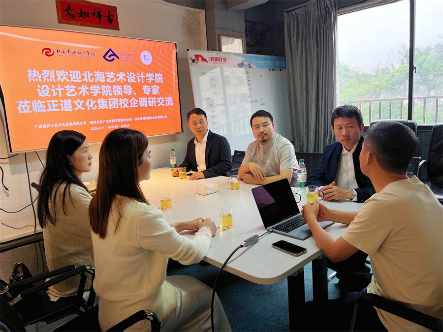 4月11日上午,调研组一行赴广西观驰品牌策划有限公司、桂林正道广告传媒有限责任公司开展调研,深入调研人工智能时代品牌设计行业的人才需求与培养路径,考察企业服务案例并开展交流。调研组聆听了各公司负责人对创新产品体系及设计案例库的介绍,以及当前行业人才培养所需的核心素养、行业需求、教学建议,为设计艺术学院重构实践教学体系,优化人才培养方案获取了宝贵的市场化视角和重要参考。