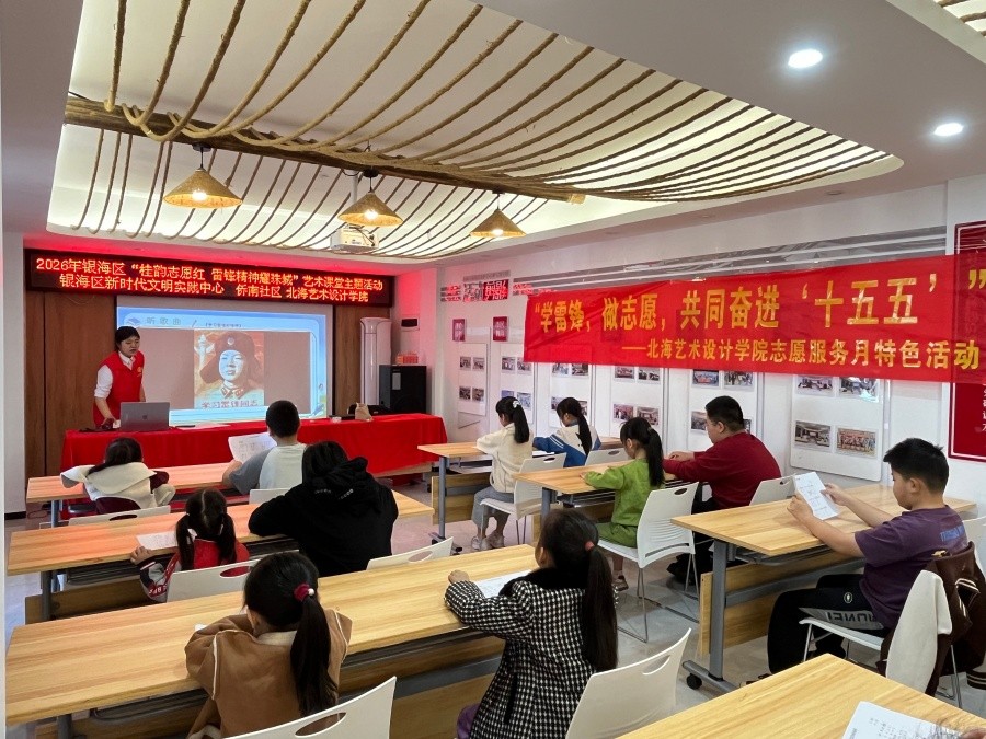 为弘扬新时代雷锋精神,紧跟国家“十五五”规划,3月14日至15日,北海艺术设计学院校团委联合侨南社区、银海区新时代文明实践中心,成功举办“青春践行雷锋精神,爱心支教暖童心”特色志愿服务支教活动。活动创新融合少儿口才宣讲与雷锋主题手工创作,通过“红色言传”与“匠心实践”双线并行的方式,让雷锋精神在青少年心中落地生根、浸润成长。