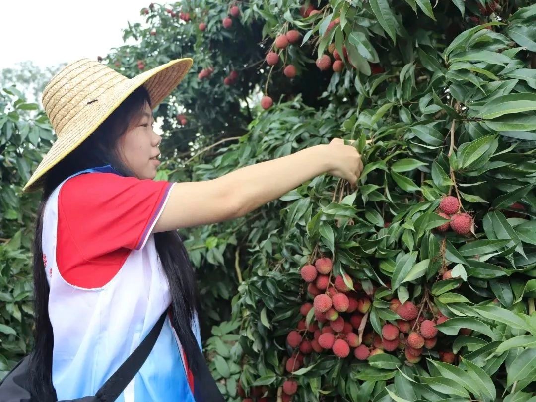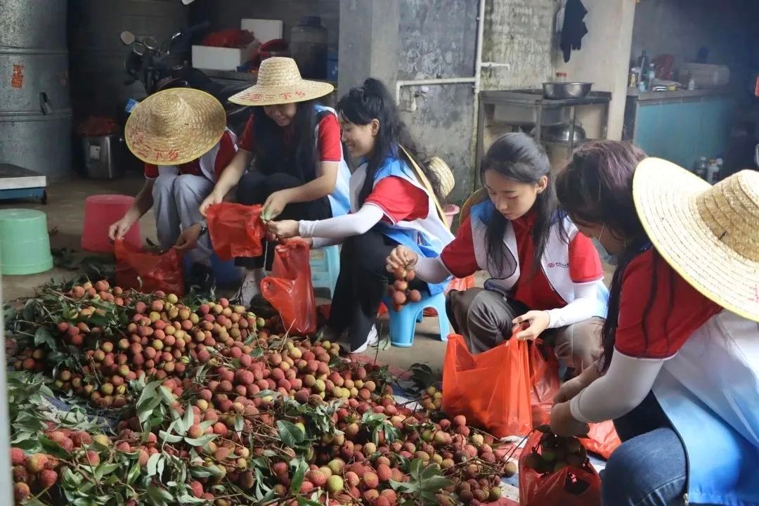 志愿者们分为两队,一队开展了助农采摘打包荔枝,另一队走到田地采摘花生,从源头了解花生的生长,亲身体会当地农民劳作的艰辛。