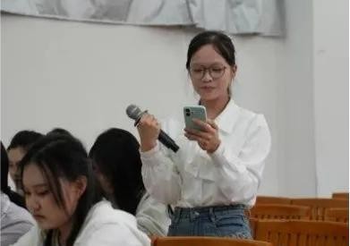 来自秘书部的庄飞扬与宣传部的陈佳艺作为新生助理代表,在第三环节中分享了她们加入团队后的成长与体会。她们讲述了一学期以来的学习收获、工作感悟以及与同仁协作的温馨点滴。真挚的发言引起了在场许多新助理的共鸣,展现了学工助理代代接力、持续焕发的活力与生机。