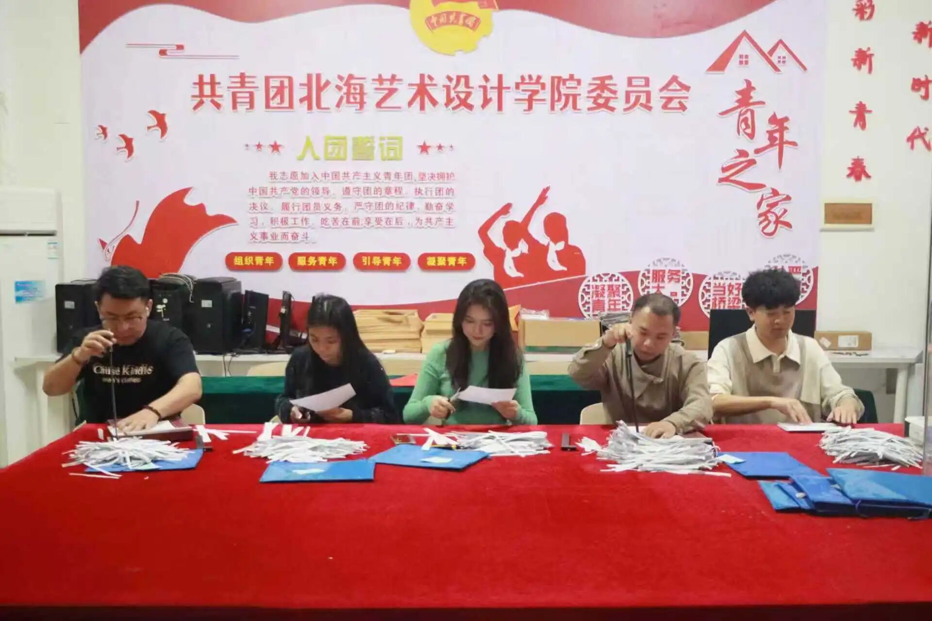 团委老师亦参与其中,与同学们携手完成这一富有意义的任务。